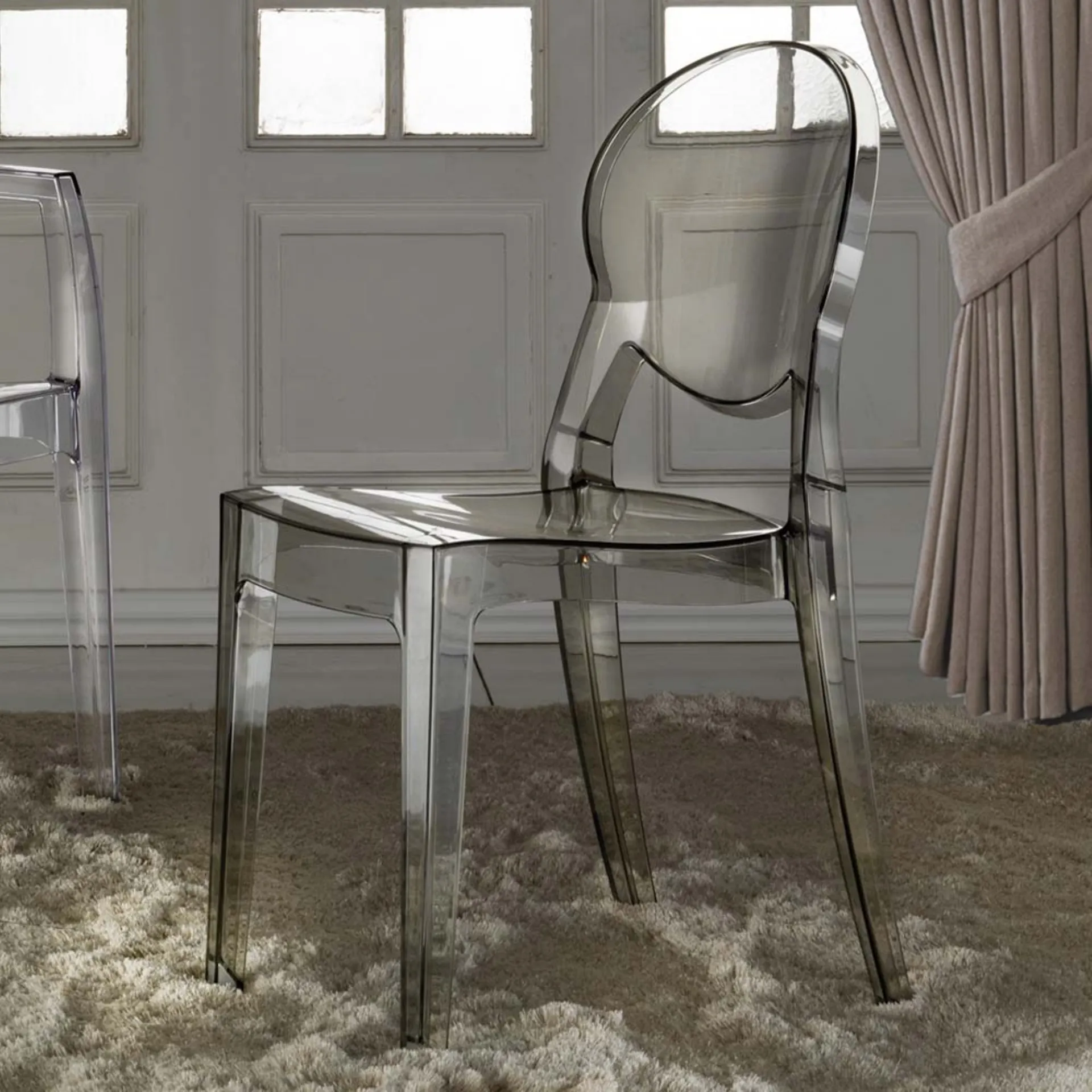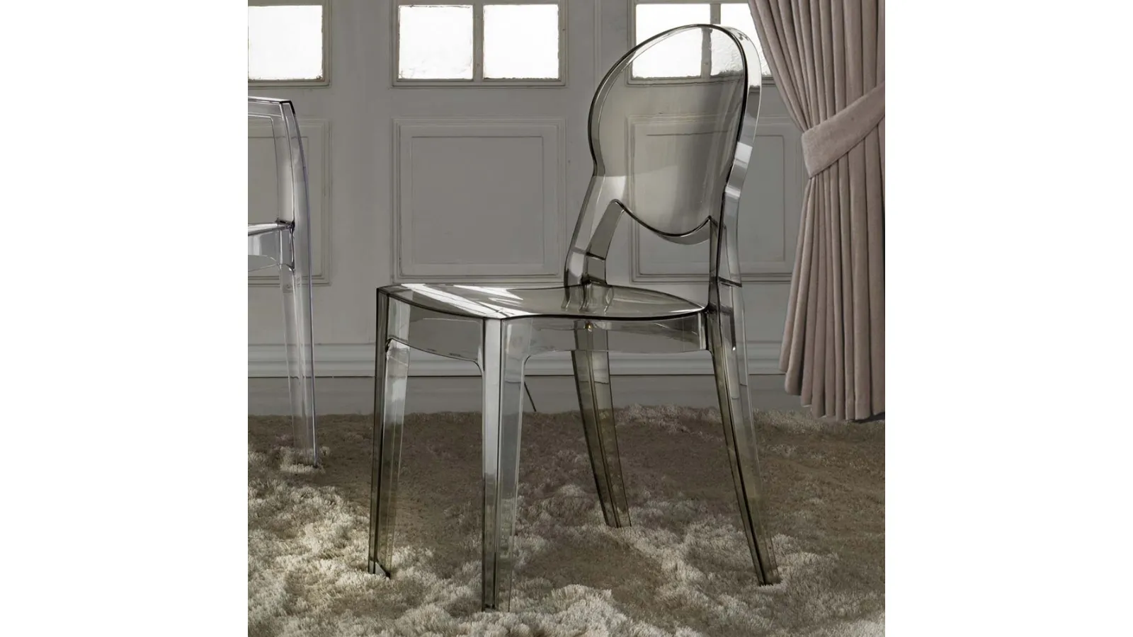 Modern style chair in transparent plastic with oval backrest