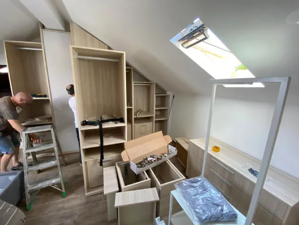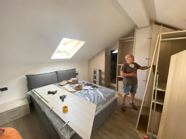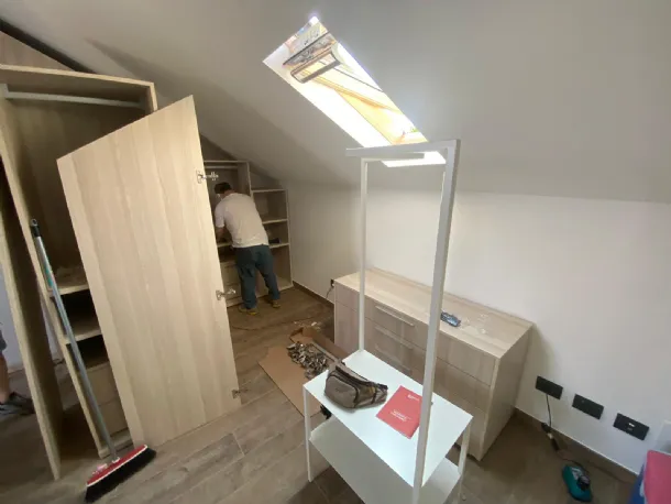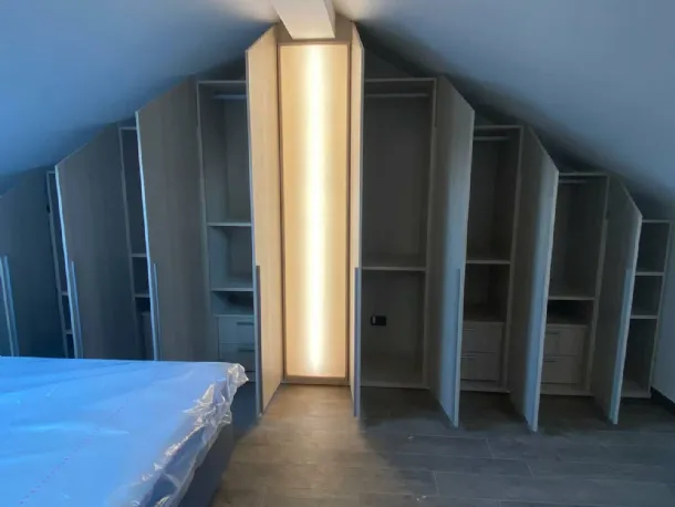 Study, design, production and installation for double standard wardrobe of our realization completely CUSTOMIZED with the & # 39; Turnkey& # 39; service, complete with Led lamp specially made in a coordinated finish all& # 39; cupboard to compensate for the presence of a central pillar