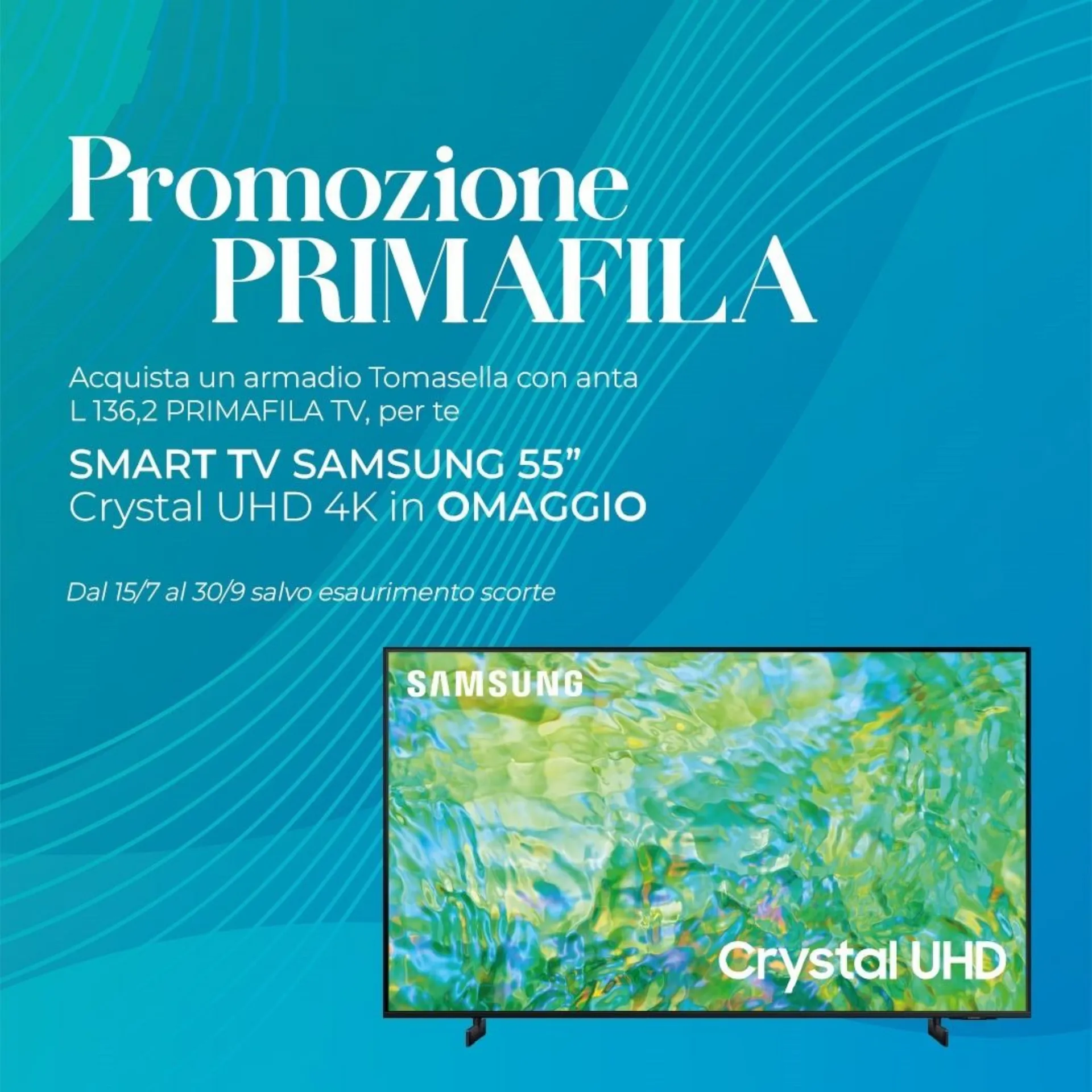 PURCHASE A TOMASELLA WARDROBE IN COMBINATION WITH A L136.2 FIRSTLINE TV DOOR: FOR YOU, A FREE SAMSUNG 55" CRYSTAL UHD 4K SMART TV! VALID UNTIL OCTOBER 31, WHILE STOCKS LAST