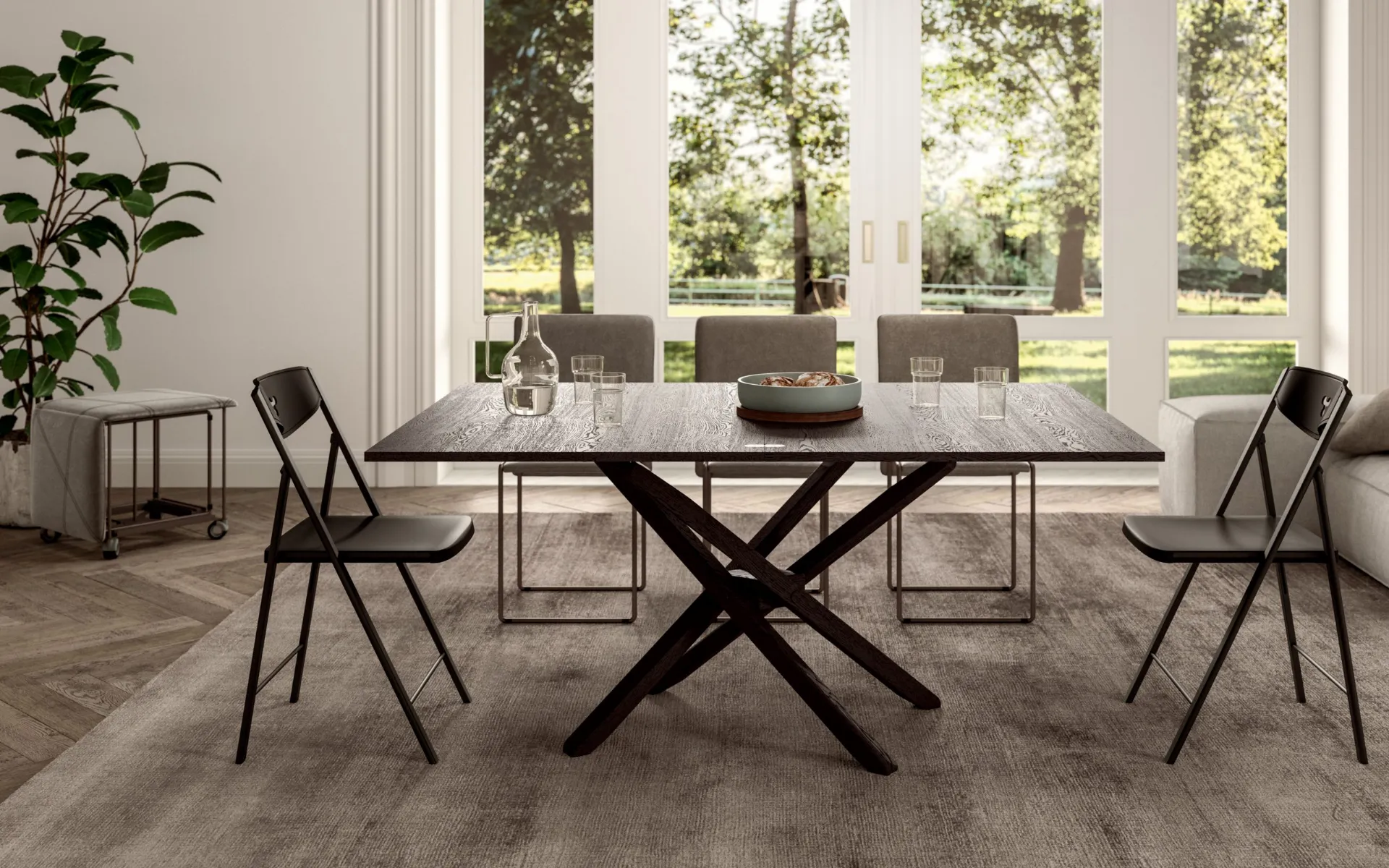 An example? The coffee table Su e Giù , completely in wood, which turns into a dining table. It is characterized by the elevated cross base, which adds a touch of design to the whole environment.