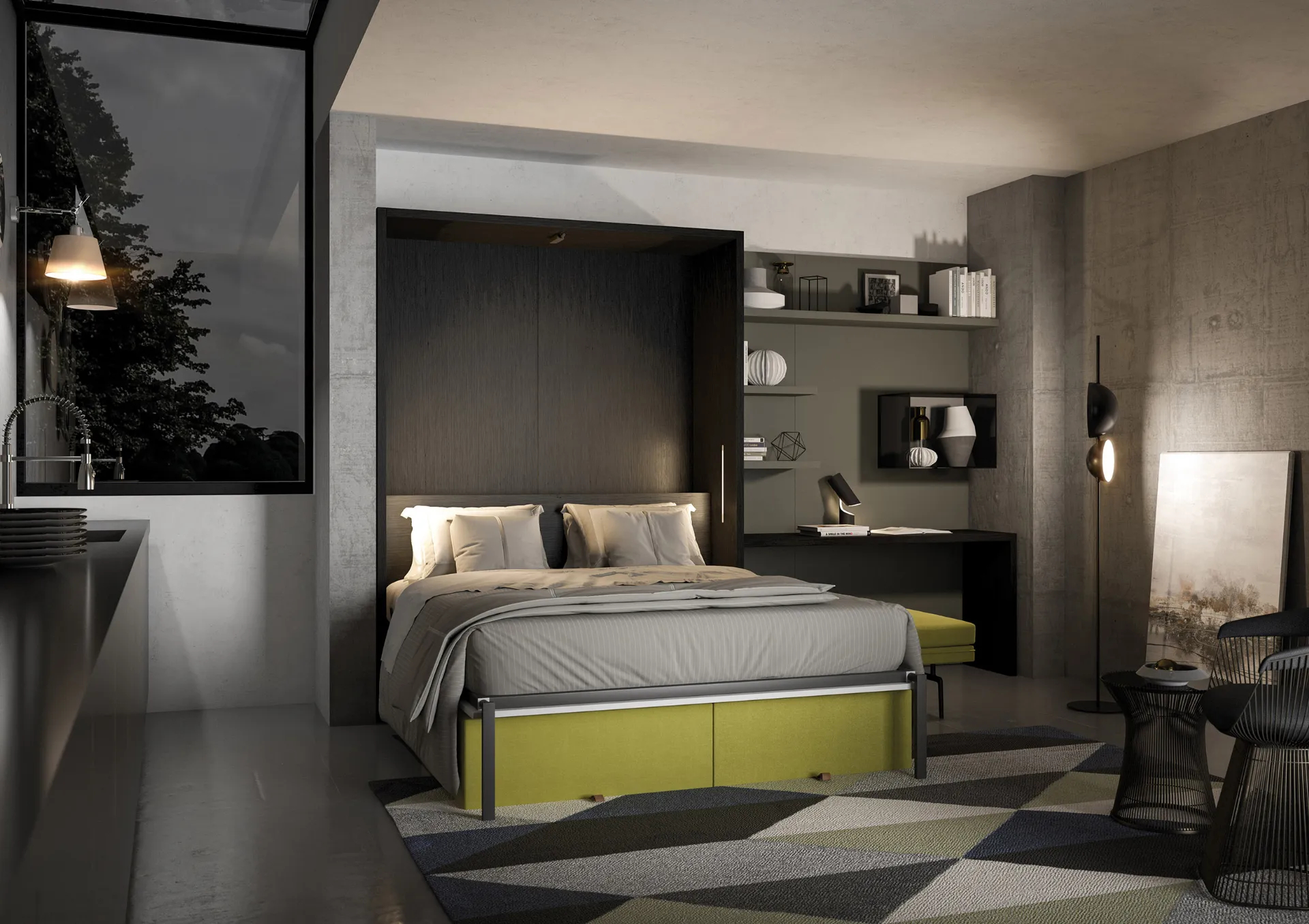The Alcova Light system transforms the living room into a bedroom with particular attention to design: it consists of a recessed frame with a square effect, with integrated lighting in the upper internal part: a perfect combination of refinement and practicality. With the Block System , the beds blend into the surrounding environment and appear only when needed.