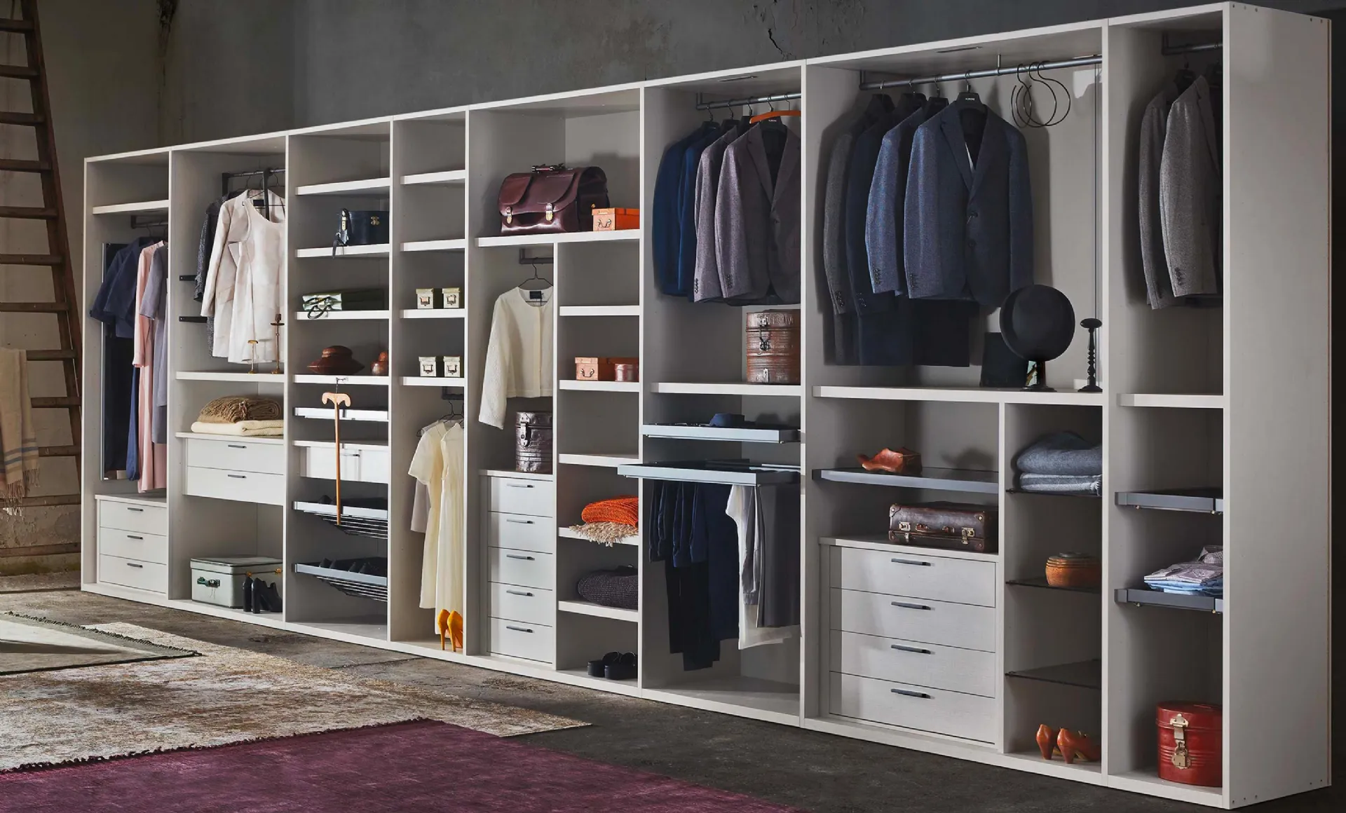 The first thing to do &is; think about what we will put in the walk-in closet: in the shop we will help you rationalize spaces and volumes , composing the elements and furnishings perché the wardrobe is beautiful and functional.