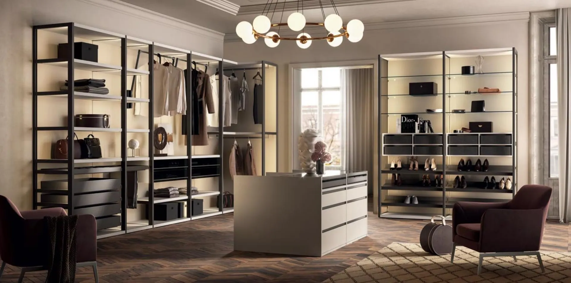 The più elements; used in the walk-in closets are: