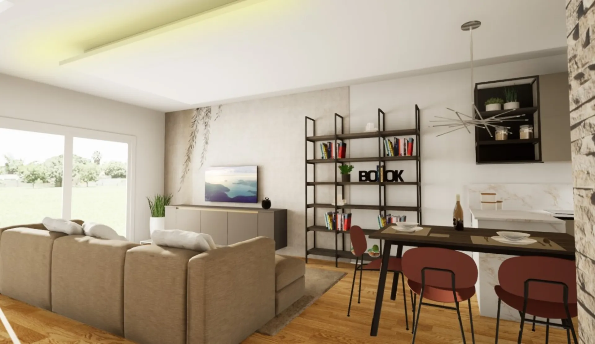 We studied a continuation of lines and materials that did not interrupt the style of the open space. The metal wall bookcase è slender and light and shows the same rhythm and design as the open wall units of the kitchen, which continues with further closed compartments of different materials, taking on così one's identityà individual.