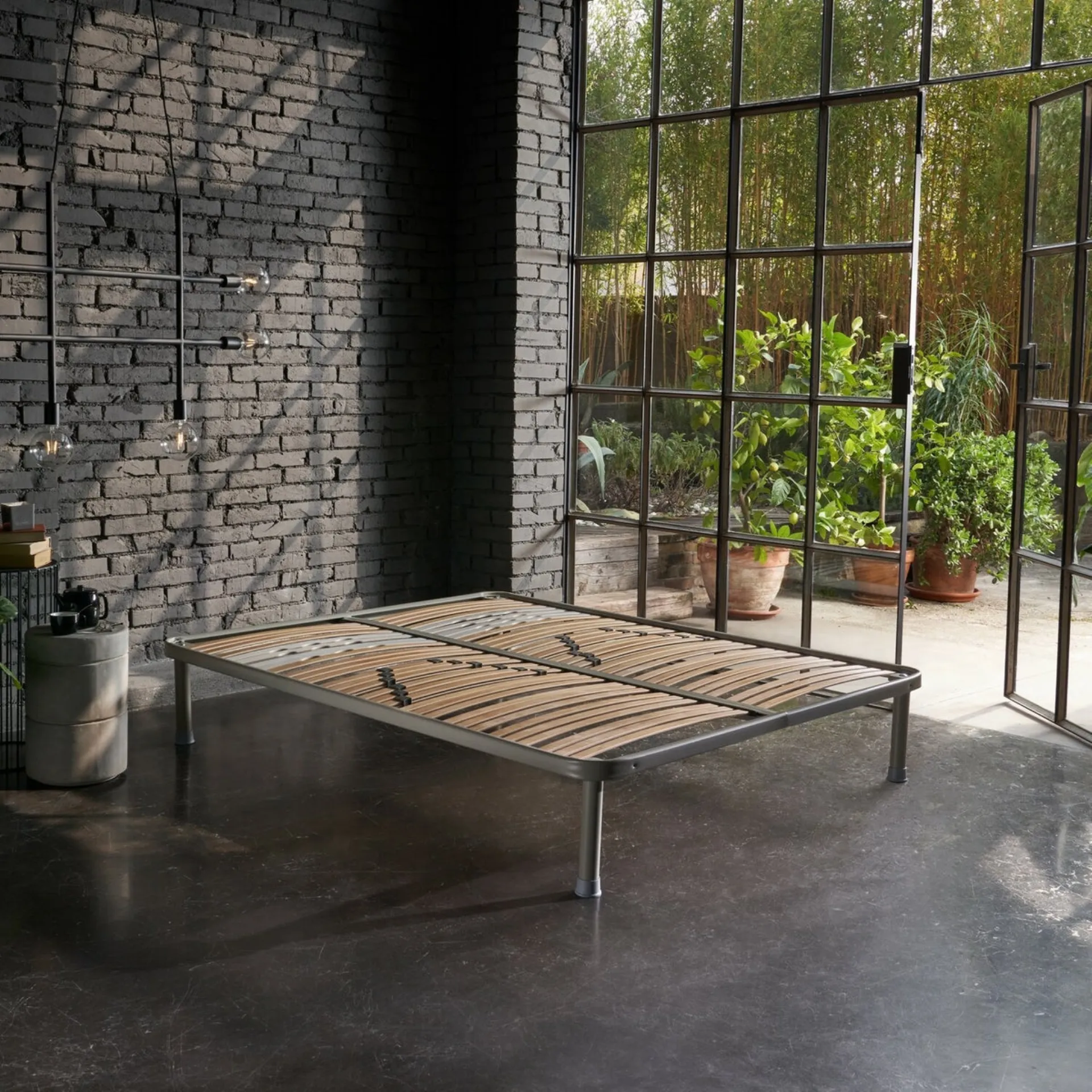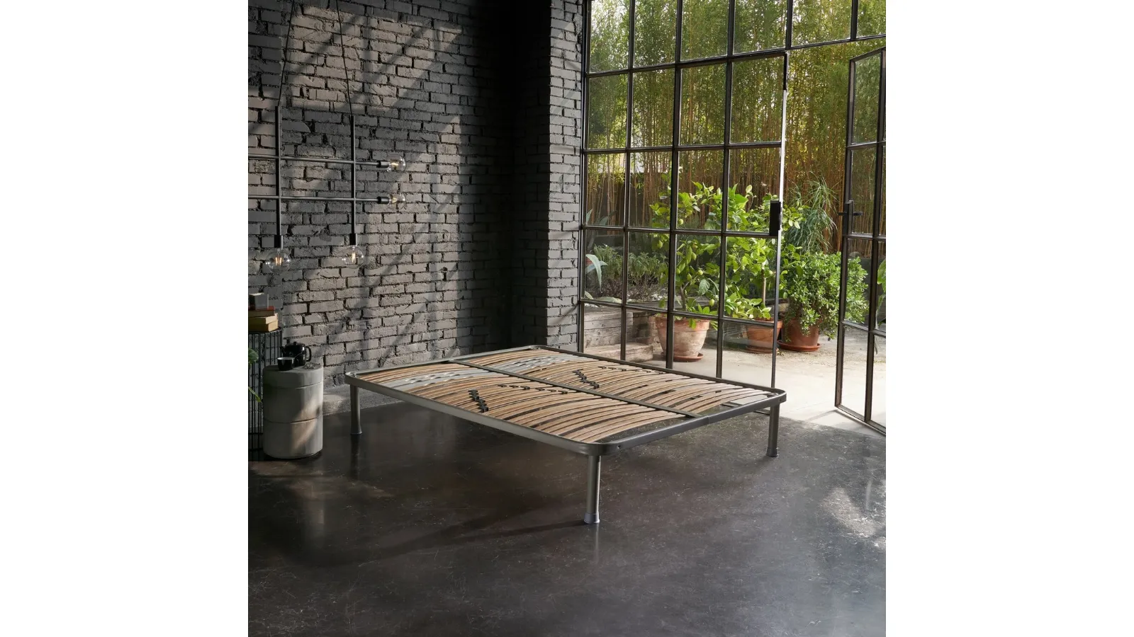 | Materiale: | Telaio in profilato d'acciaio, doghe in legno |