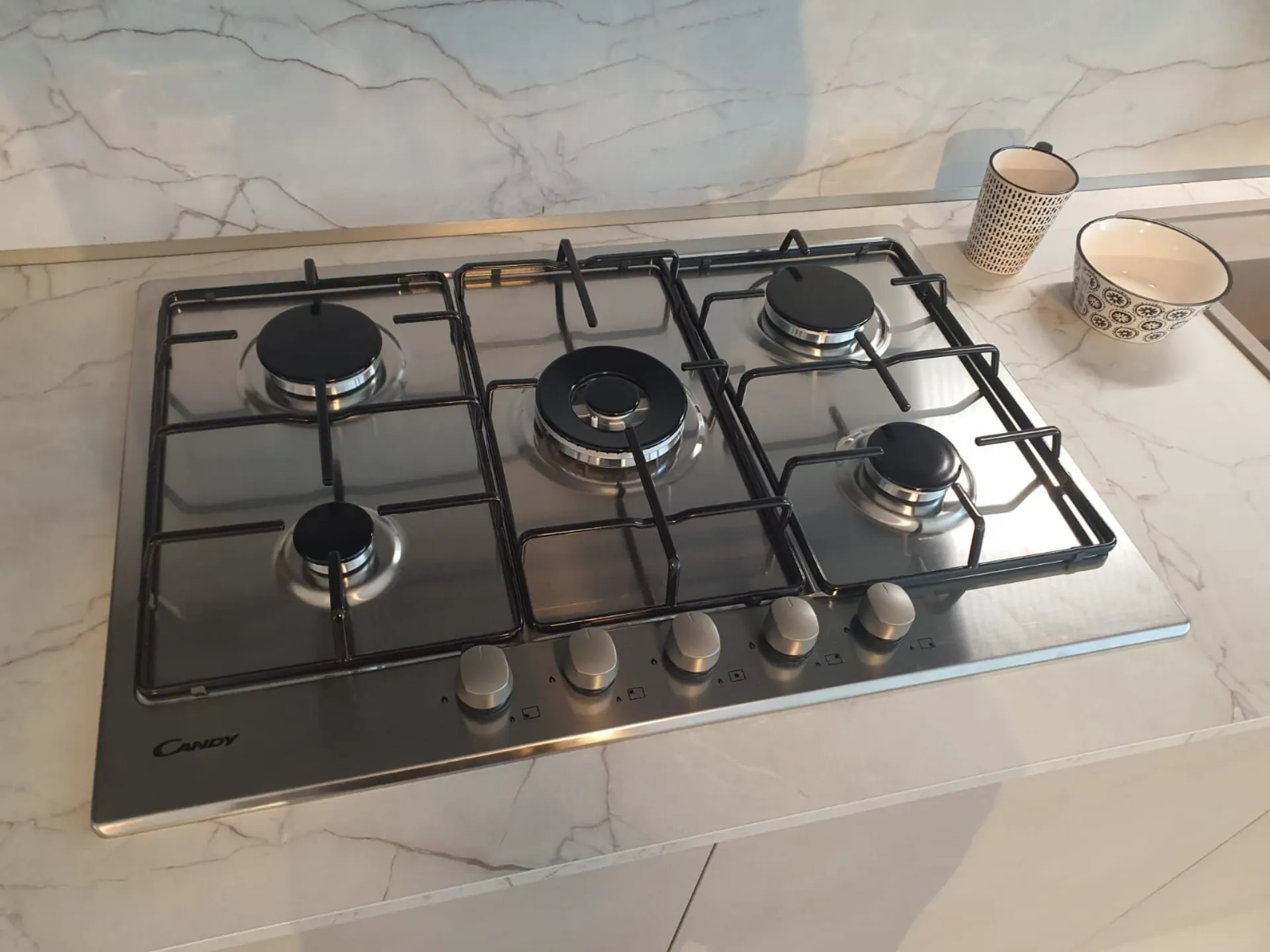 Gas hob CANDY 75cm model CHW74WX 5GAS C/TR, stainless steel finish. Contact us for more information.