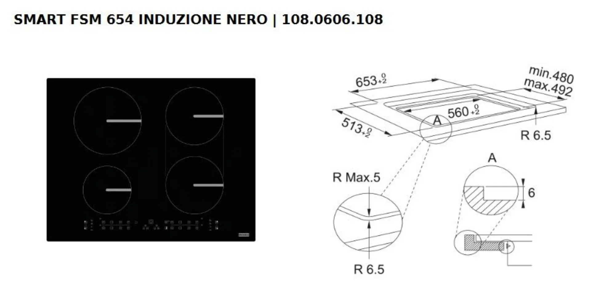 FRANKE FSM 654 I B BK Induction hob, Bridge zone, child safety, size 65x51 cm. Product from exhibition.
