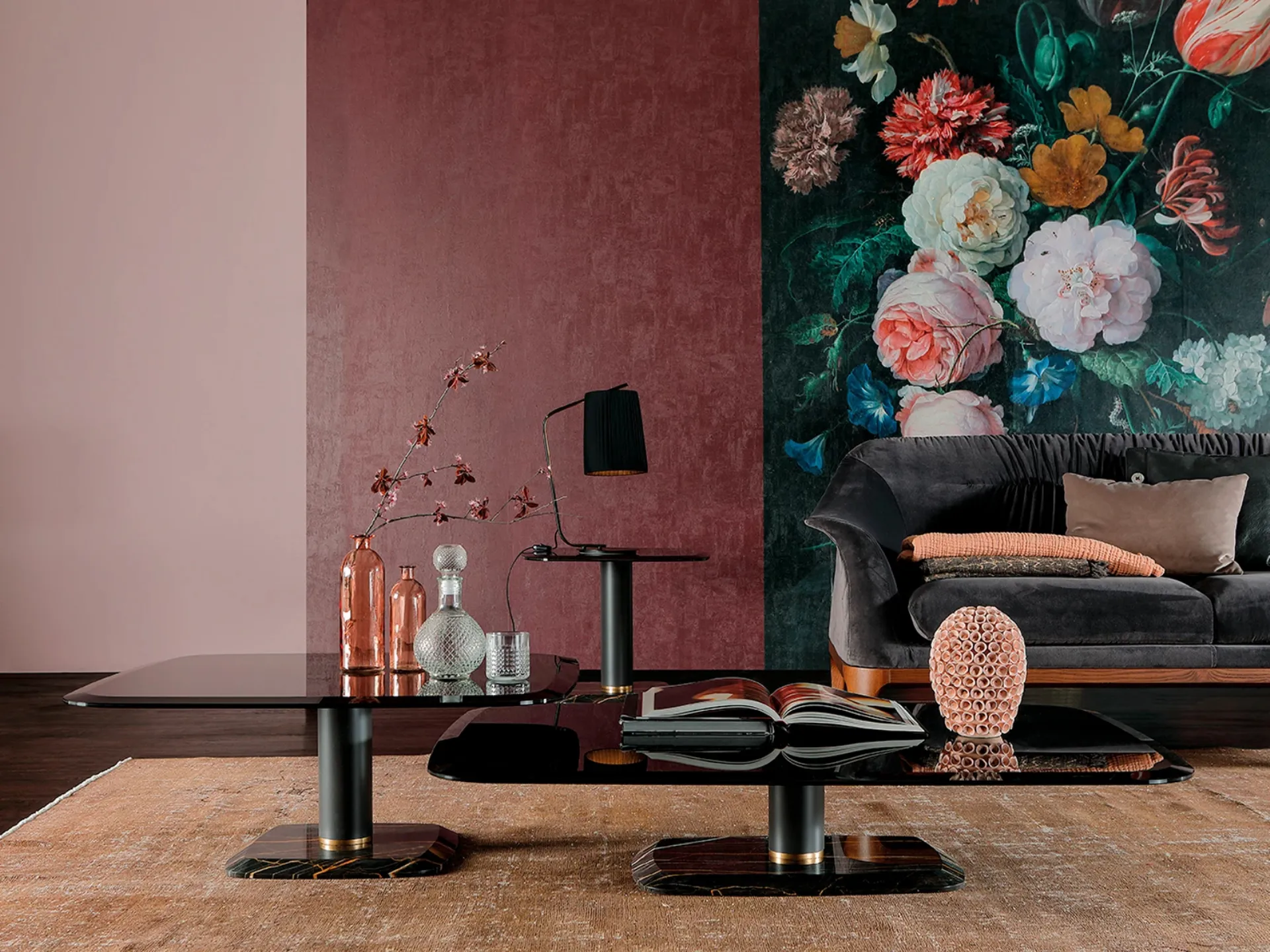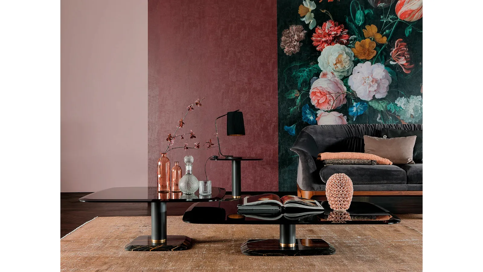 How to combine the accessories with the furniture? With multiple Tonin Casa proposals you will have colors and textures available to free your furnishing imagination. Our interior designers will guide you in selecting a good model of coffee tables, so that it can complete the practical qualities and aesthetic value of the room. Botero coffee table with base in marble, metal and glass top by Tonin Casa in glass: it fits into domestic interiors with classic references, perfectly combining great qualities of functionality and style. Classic accessories and coffee tables add great value to the furnishing of our homes and are multifunctional as well as beautiful to look at. In our showroom we offer Tonin Casa furniture and accessory elements: the almost infinite range of beautiful accessories of the brand is waiting for you.