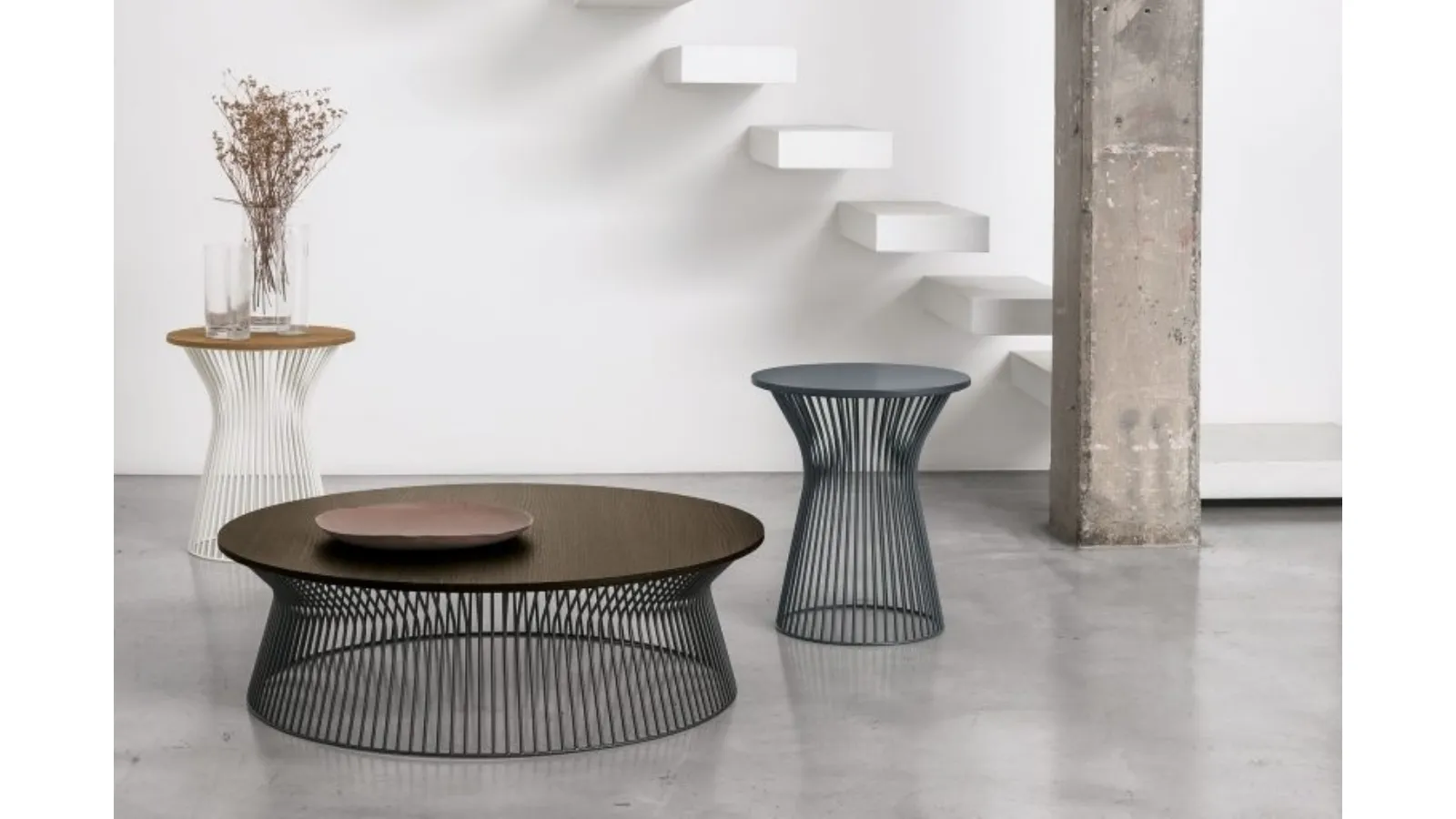 Il Tavolino Brigitte di Tomasella si configura come una serie di elementi d'arredo a pianta circolare, distinti da una base ingegnerizzata con tubi metallici di sezione ridotta che conferiscono una peculiare valenza estetica e strutturale. Questo complemento d'arredo è concepito per un'integrazione flessibile negli spazi living, ottimale sia come punto focale frontale che come supporto laterale a divani. La collezione offre una modularità dimensionale, presentando varianti come il modello con diametro di 45 cm e altezza di 52 cm, e la versione con diametro di 100 cm e altezza di 30 cm, permettendo un'accurata selezione in base alle esigenze progettuali. Le superfici dei piani sono disponibili in finiture materiche quali nodato chiaro, rovere moka e rovere carbone, o in laccato opaco nella colorazione bromo. Le strutture metalliche sono proposte nelle colorazioni bianco gesso, antracite e hot, con l'antracite 160 come finitura di riferimento. Per una comprensione esaustiva delle proprietà dei materiali e delle opzioni di finitura, invitiamo a consultare le specifiche tecniche dettagliate.