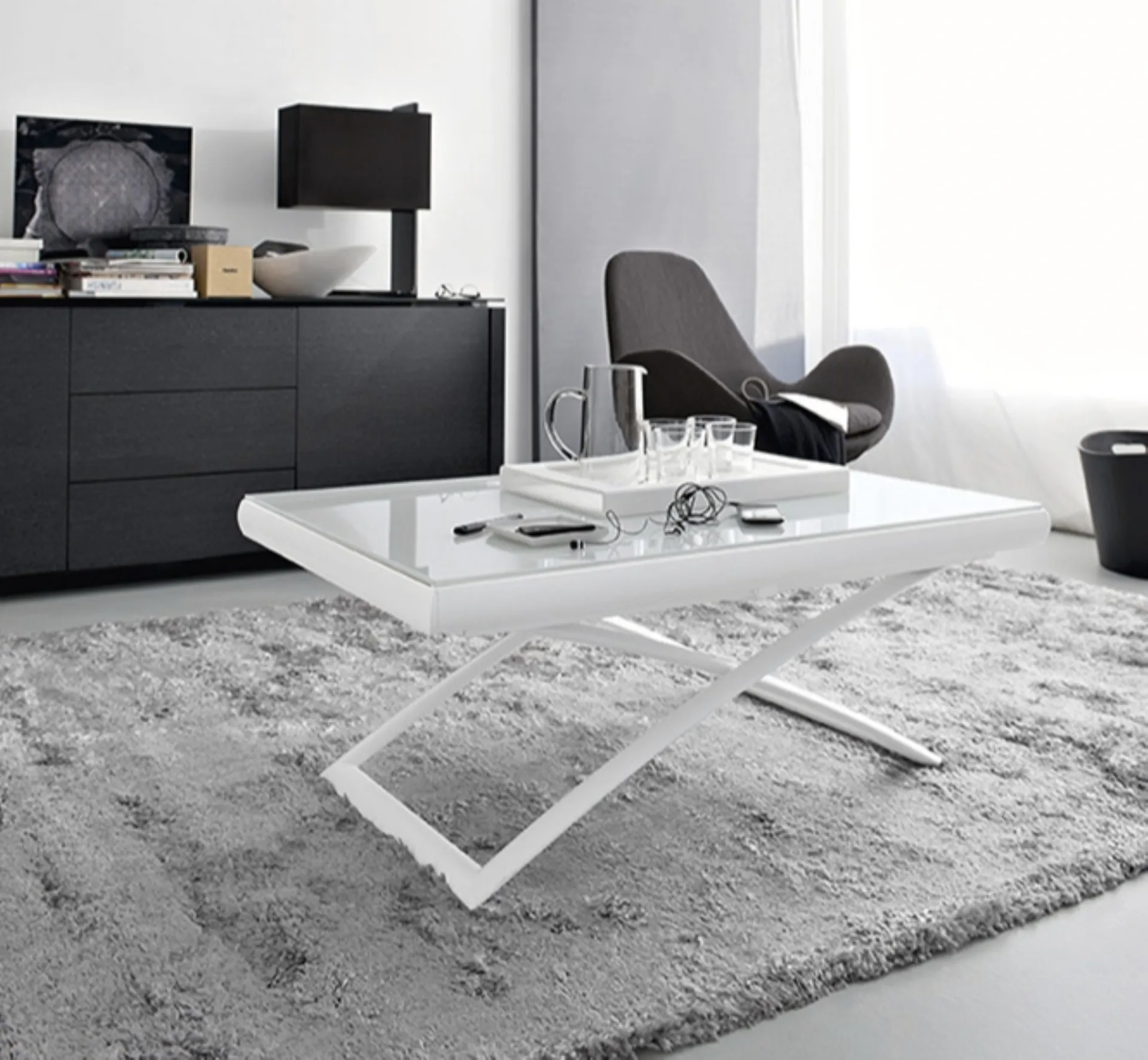 Glass coffee tables and modern accessories to customize your interiors: the extendable Dakota model