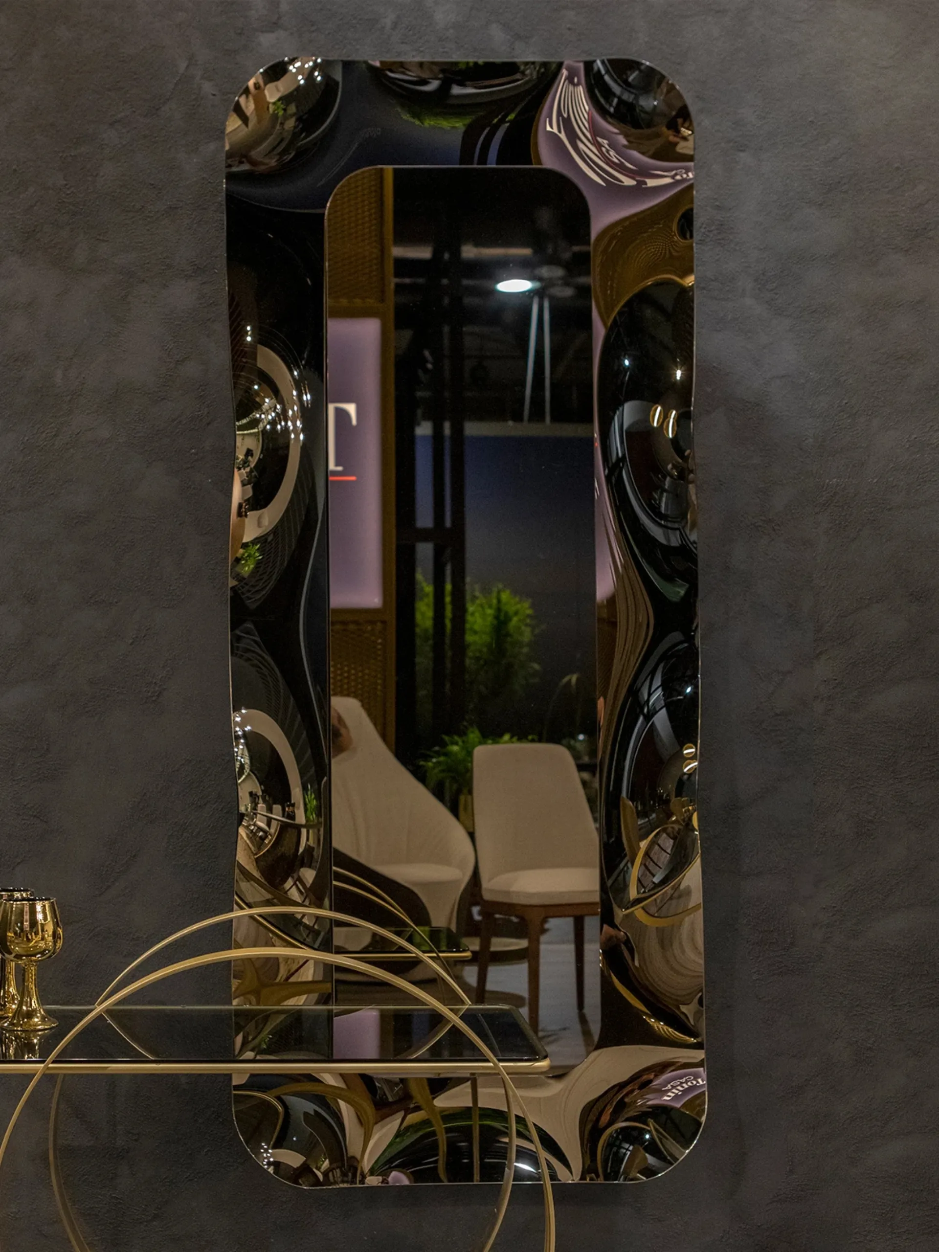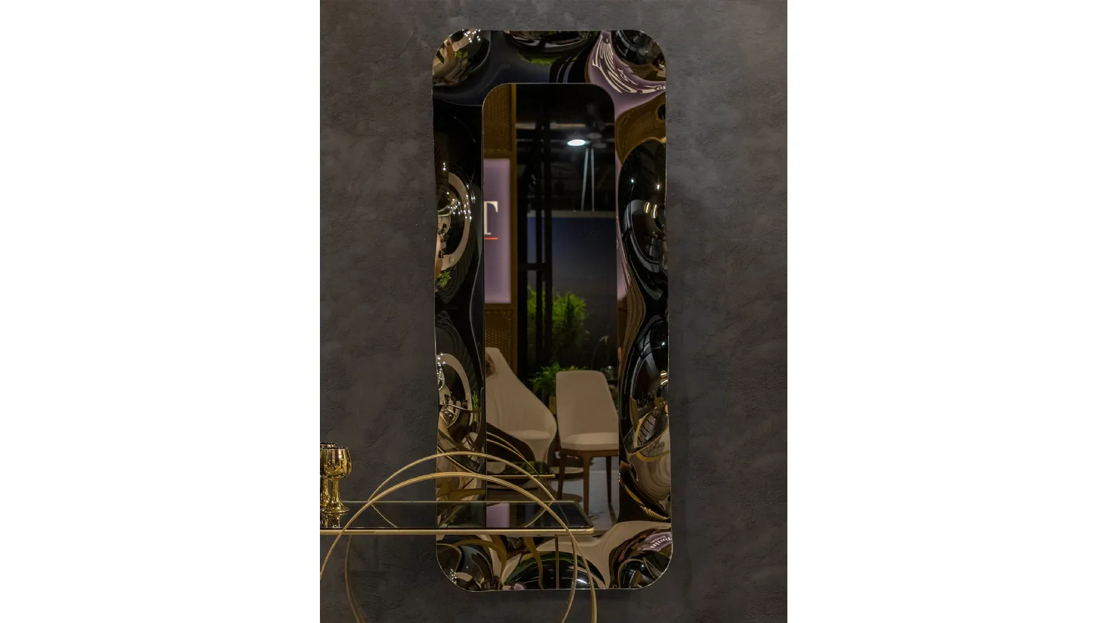 The charming compositions of the Tonin Casa brand enhance the habitat with their colors and taste, recreating peculiar furnishing atmospheres. Highly versatile and multi-functional, the glass design complements serve various purposes: they complete the practical qualities and aesthetic value of the environment. In our store, you will be able to see firsthand the excellence of the glass design mirror models from the brand, just like this solution in the photo. Tonin Casa's Dorian glass design mirror will bring character and charm to a room furnished with furniture and complements with design references. Complements and mirrors complete the home furnishing, filling the space in a useful way and making it cozy and beautiful to look at.