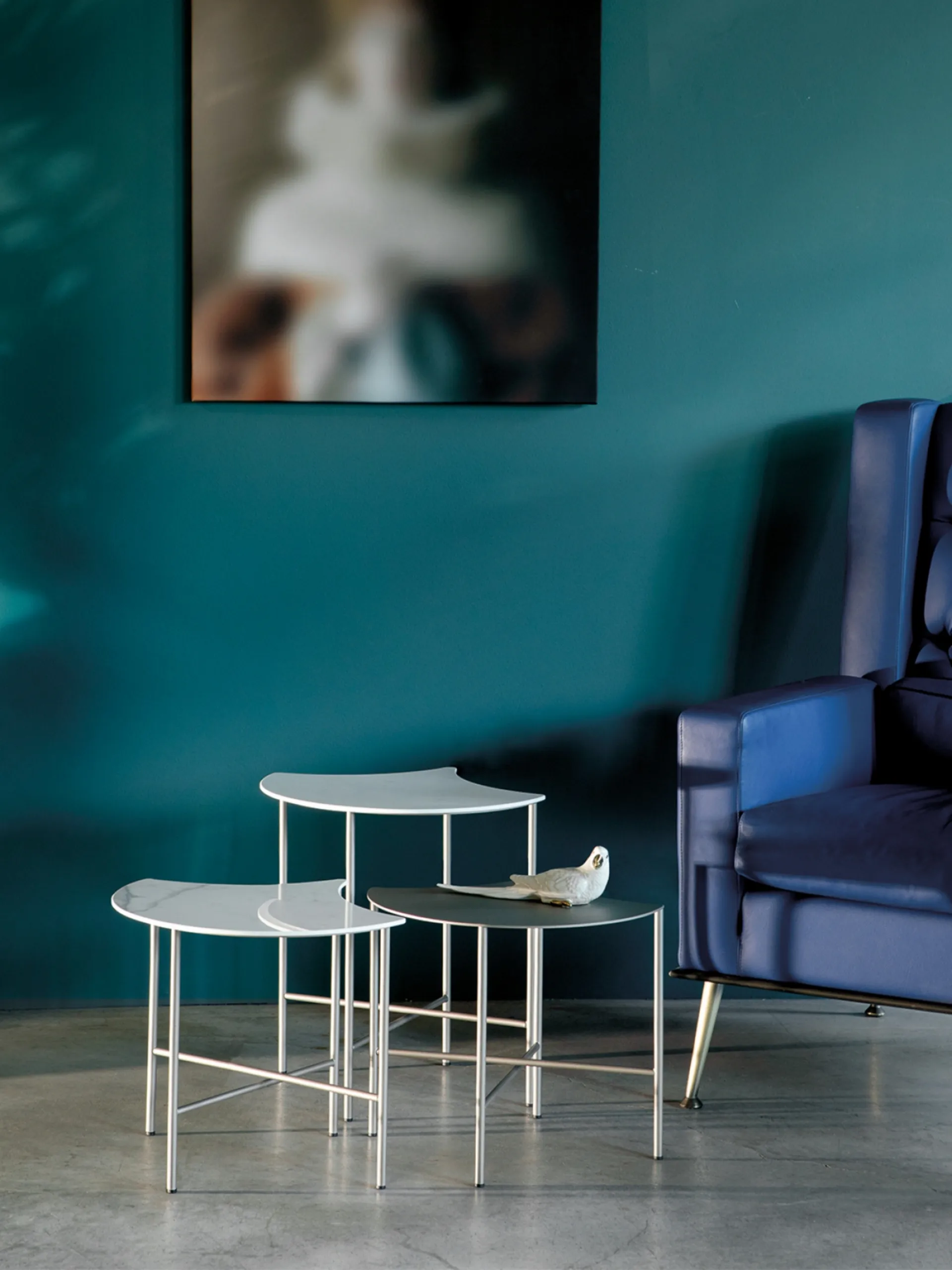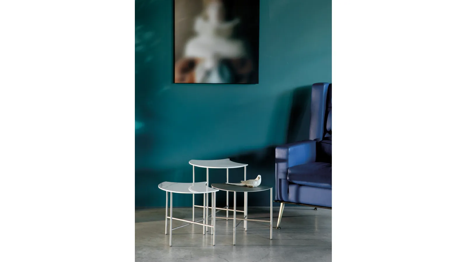 The compositions of great aesthetic value of the Tonin Casa brand personalize the interiors with color and taste, recreating peculiar furnishing atmospheres. Very versatile and multifunctional, modern metal accessories perform diversified functions: they complete the functionality and aesthetics of the environment. In our showroom you will be able to see firsthand the excellence of the brand's modern metal coffee table models, just like this solution in the photo. Complements and coffee tables personalize the home furnishings, occupying the space in a useful way and making it very functional and beautiful to look at. Ginco coffee table by Tonin Casa in metal: it will add personality and charm to an interior furnished with furniture and accessories with modern references.