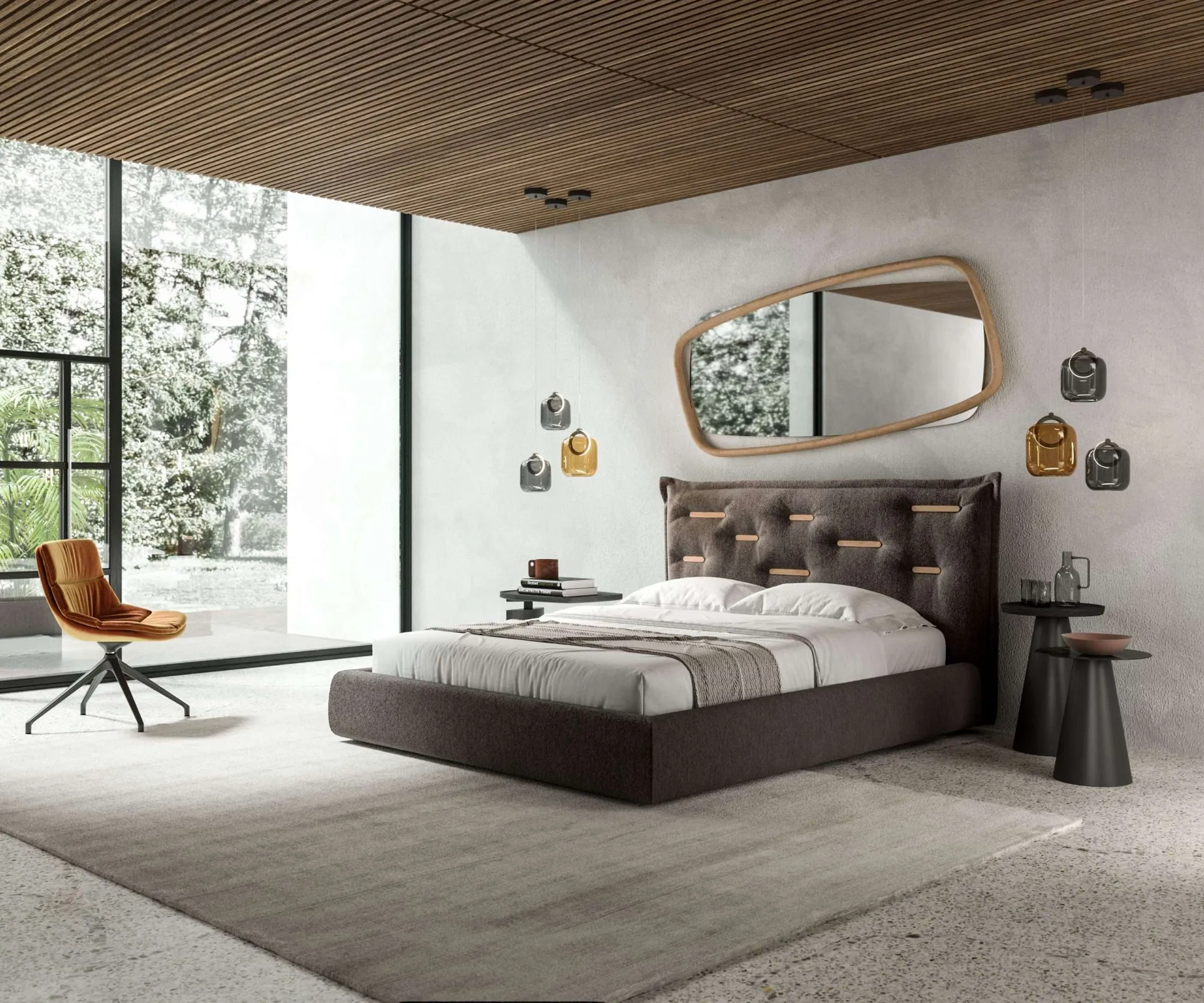 Discover our collection of designer home accessories and mirrors, such as the Golden Wood Mirror shown in the photograph.