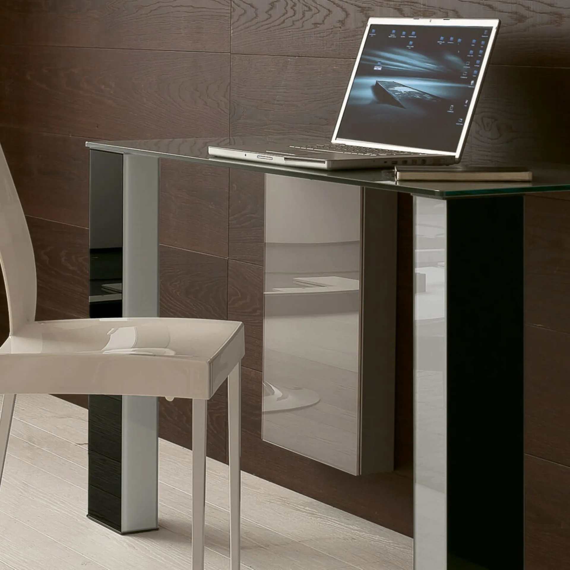Modern complements and desks add great value to the furnishing of our homes and are not only beautiful to look at, but also multifunctional. Hide desk by Ponti Terenghi in glass: it fits into modern-style domestic spaces, combining great functionality and style. Our interior designers will help you choose a good desk model, so that you can enhance the practicality and aesthetic value of the environment. How to coordinate complements with the furnishing? With multiple proposals from Ponti Terenghi, you will have a variety of colors and textures available to express your decorative imagination.