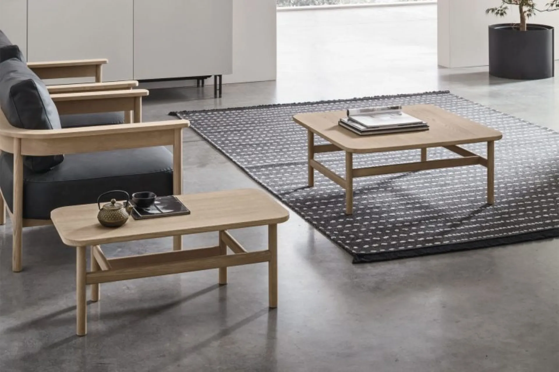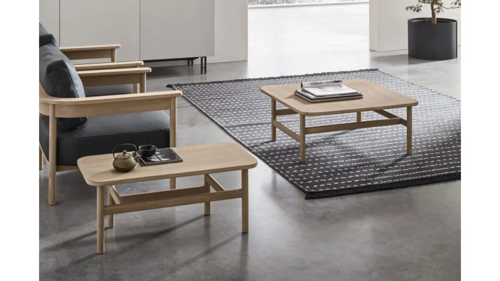 Complements and coffee tables complete the home decor, occupying the space in a useful way and making it highly functional and appealing to the eye. In our store, you will be able to experience firsthand the excellence of the modern wooden coffee table models from the company, just like this solution in the photo. Tomasella's Hood wooden coffee table will bring personality and charm to an interior furnished with modern furniture and accessories. The brand's aesthetically valuable furnishing compositions decorate interiors with their colors and taste, creating unique atmospheres. Highly versatile and multifunctional, modern wooden complements serve various purposes: they enhance the practical qualities and aesthetics of the room.