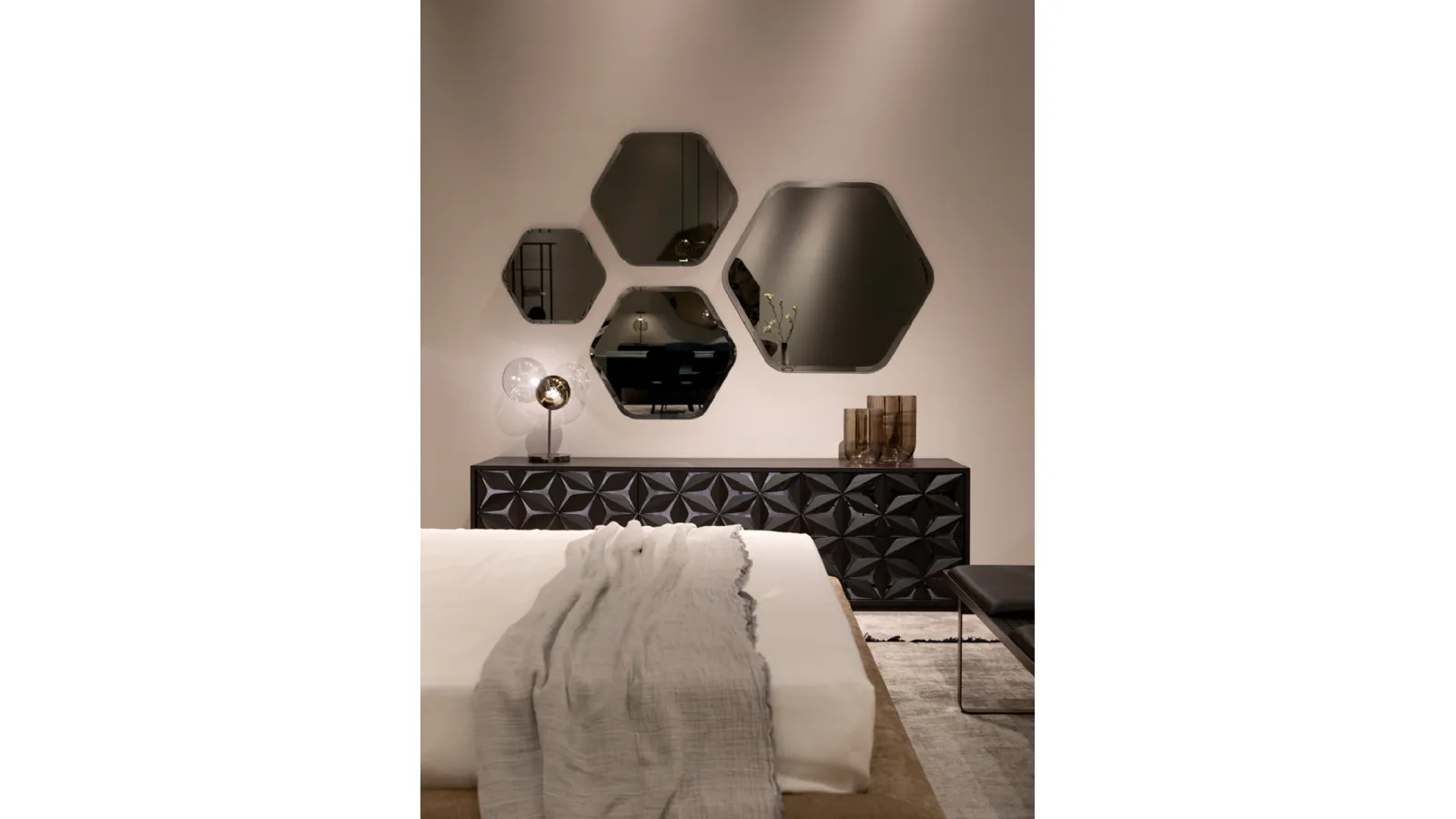 Scopri lo Specchio Kaleidos di Tonin Casa, un elegante trittico di specchi esagonali con bisello disponibile in finiture argentate, bronzate o fumè. Offriamo un servizio di consegna e installazione professionale, estendendo la nostra competenza in arredamento e posa in opera su misura in diverse aree, tra cui Legnano, Rho e Novara. Le forme geometriche armoniose di Kaleidos si integrano perfettamente in ogni ambiente, garantendo un tocco di design e funzionalità. Per la tua tranquillità, ogni acquisto è accompagnato da un'assistenza post-vendita dedicata e una garanzia completa, pensate per assicurare la tua piena soddisfazione e la durabilità del prodotto nel tempo.