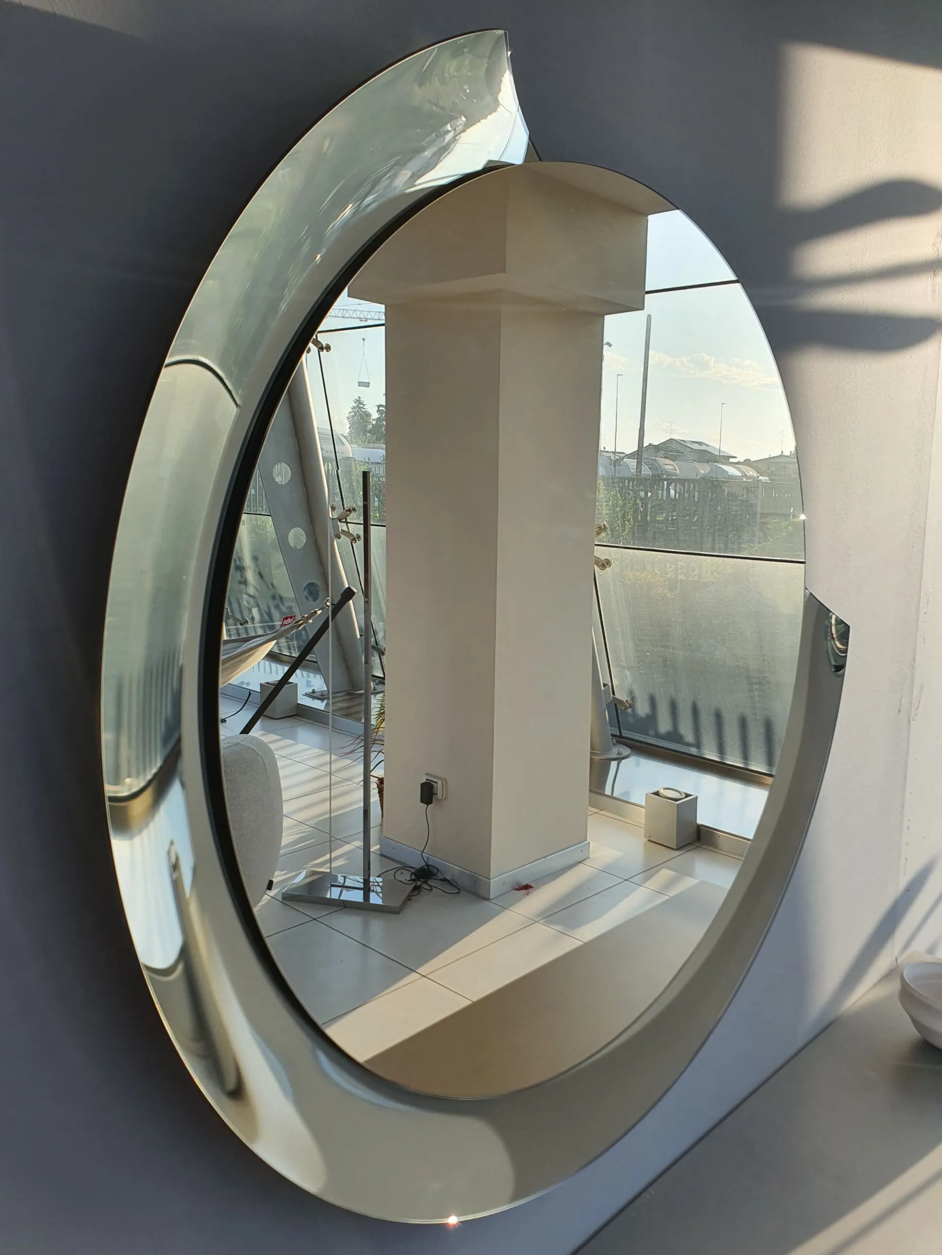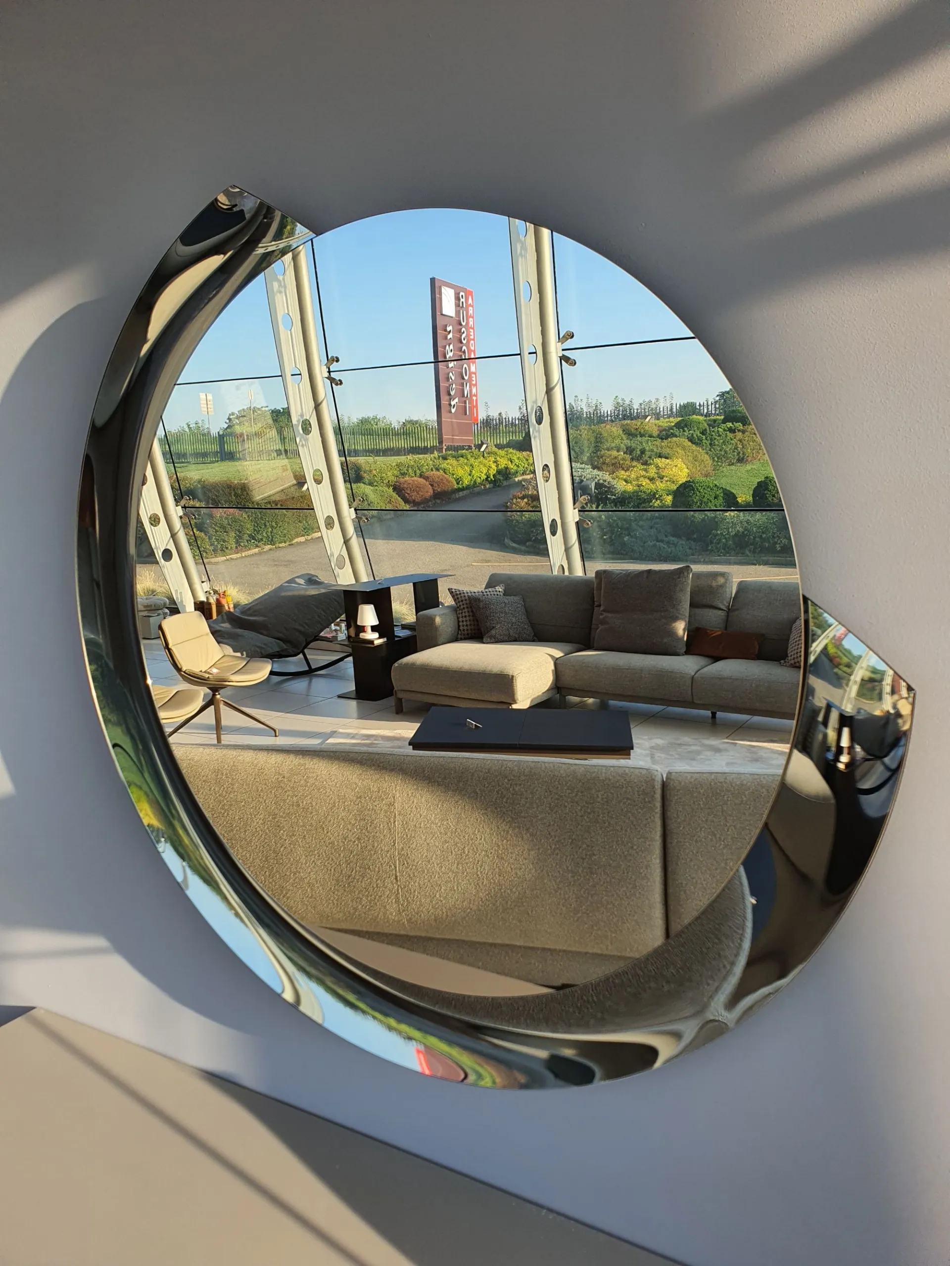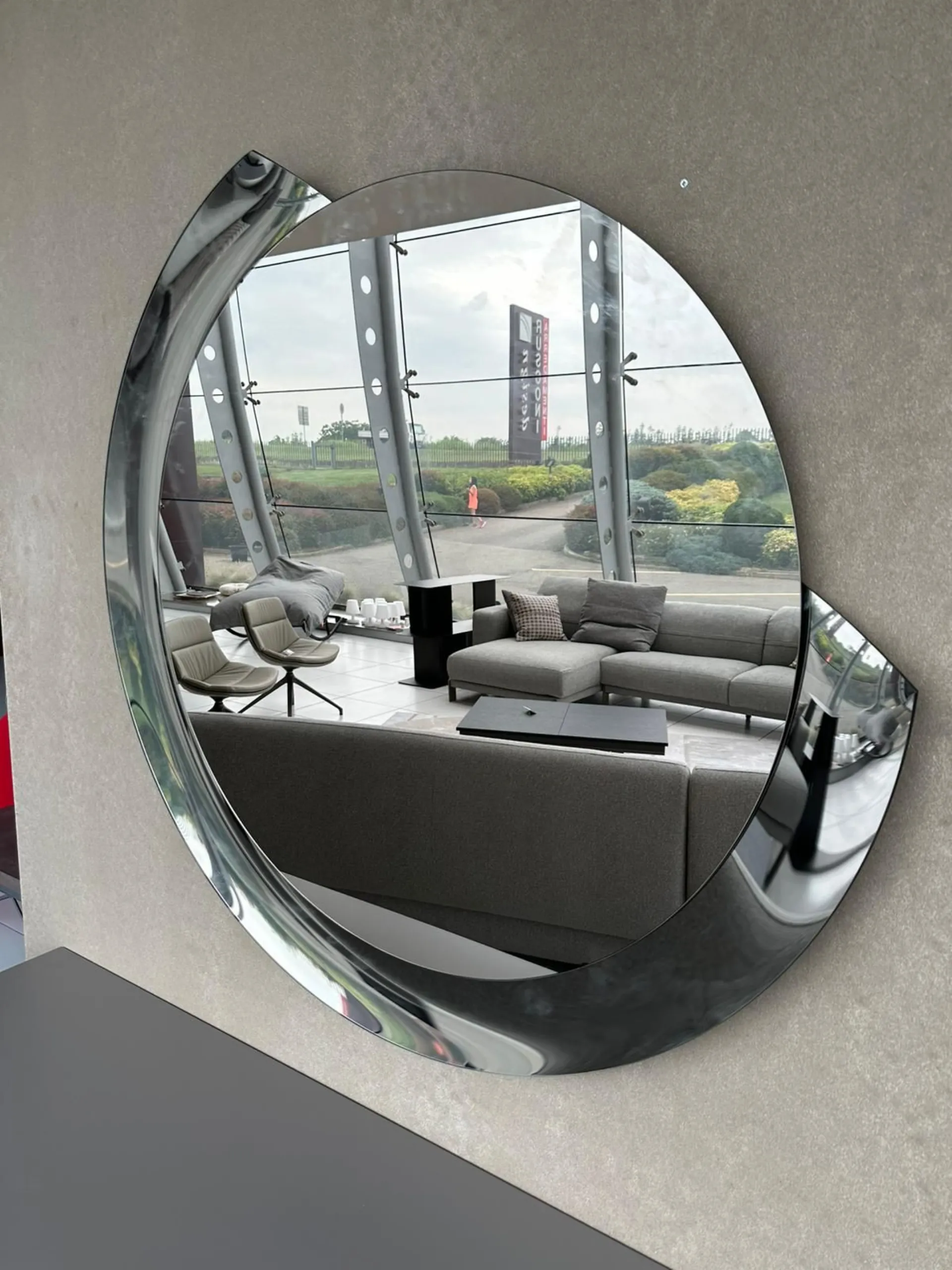 Round mirror with a diameter of 110cm, silver mirror with bronze mirror frame.