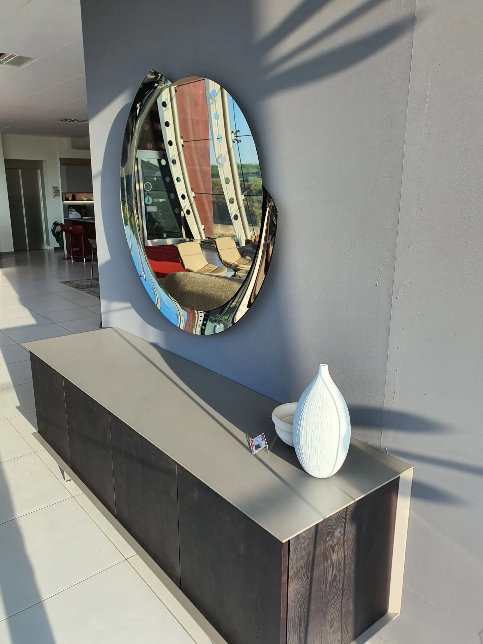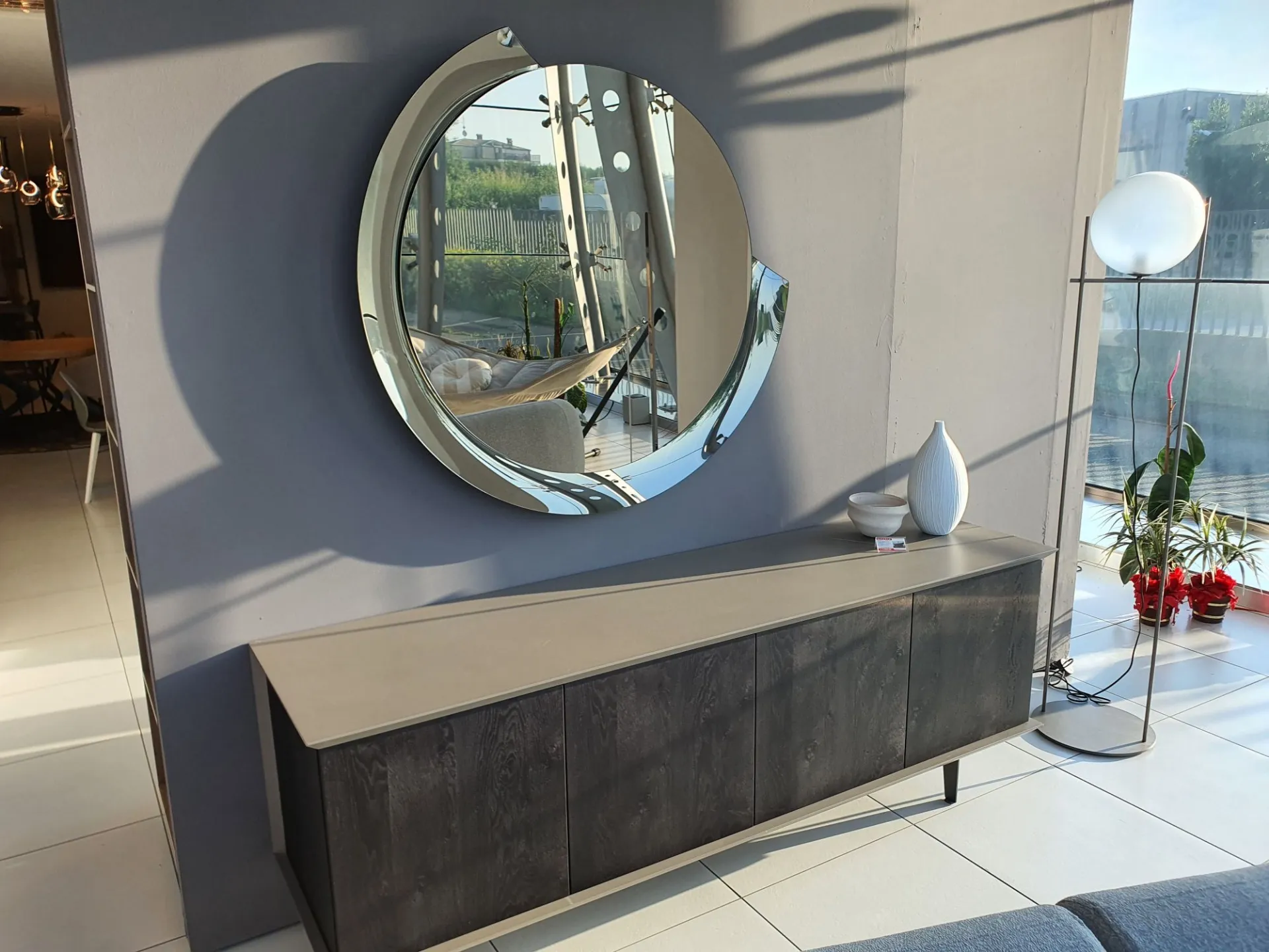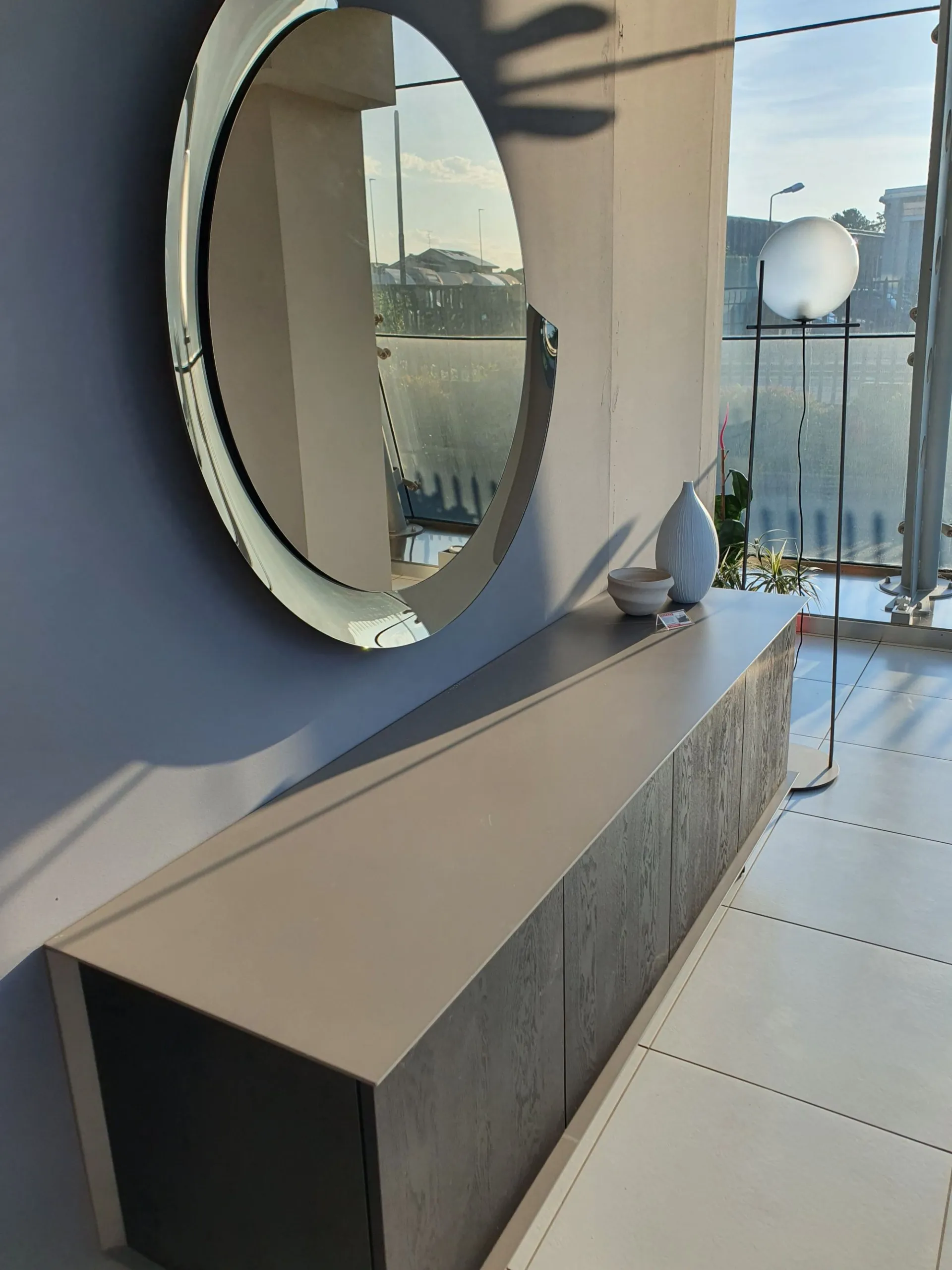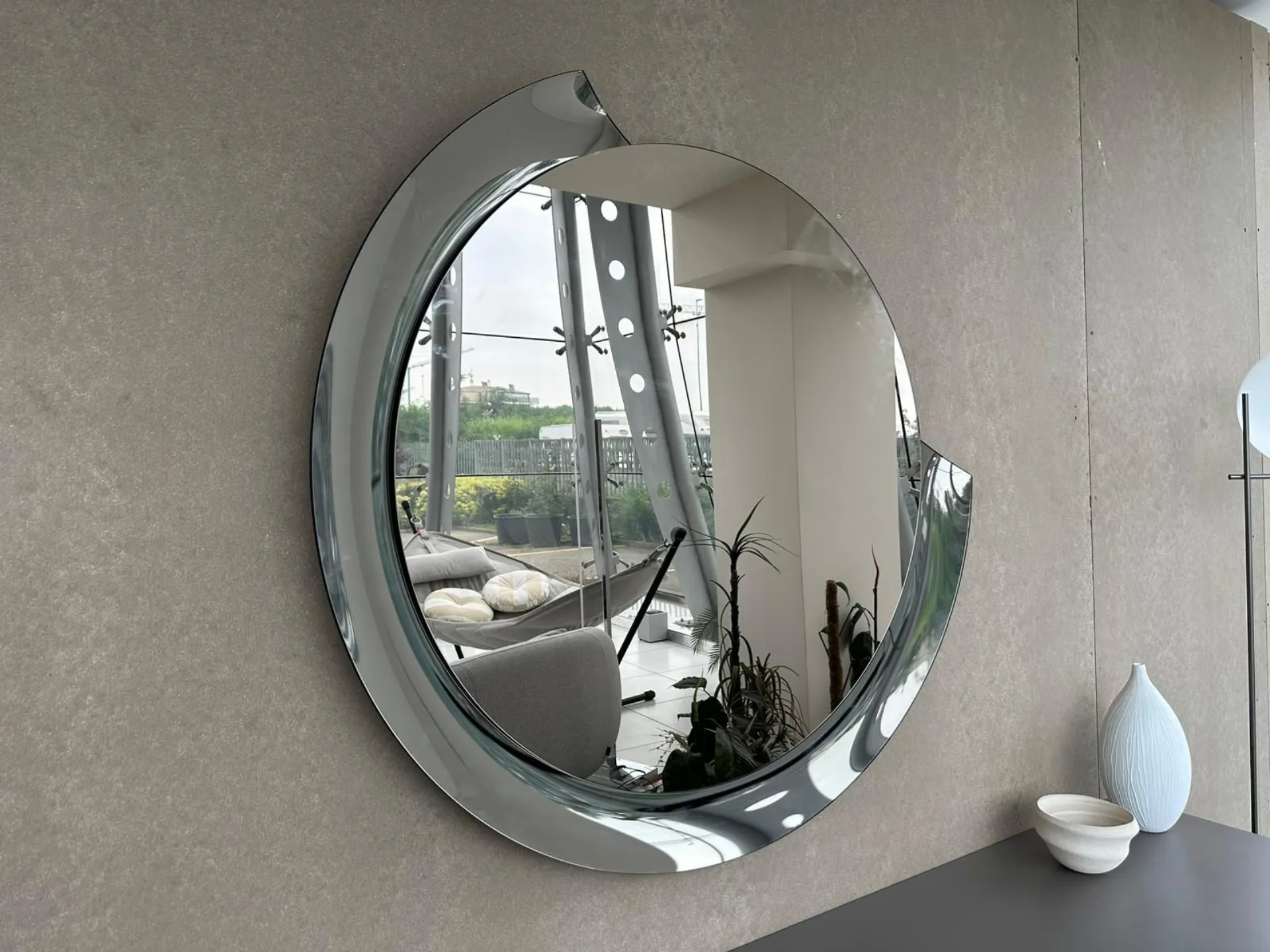 Round mirror with a diameter of 110cm, silver mirror with bronze mirror frame.