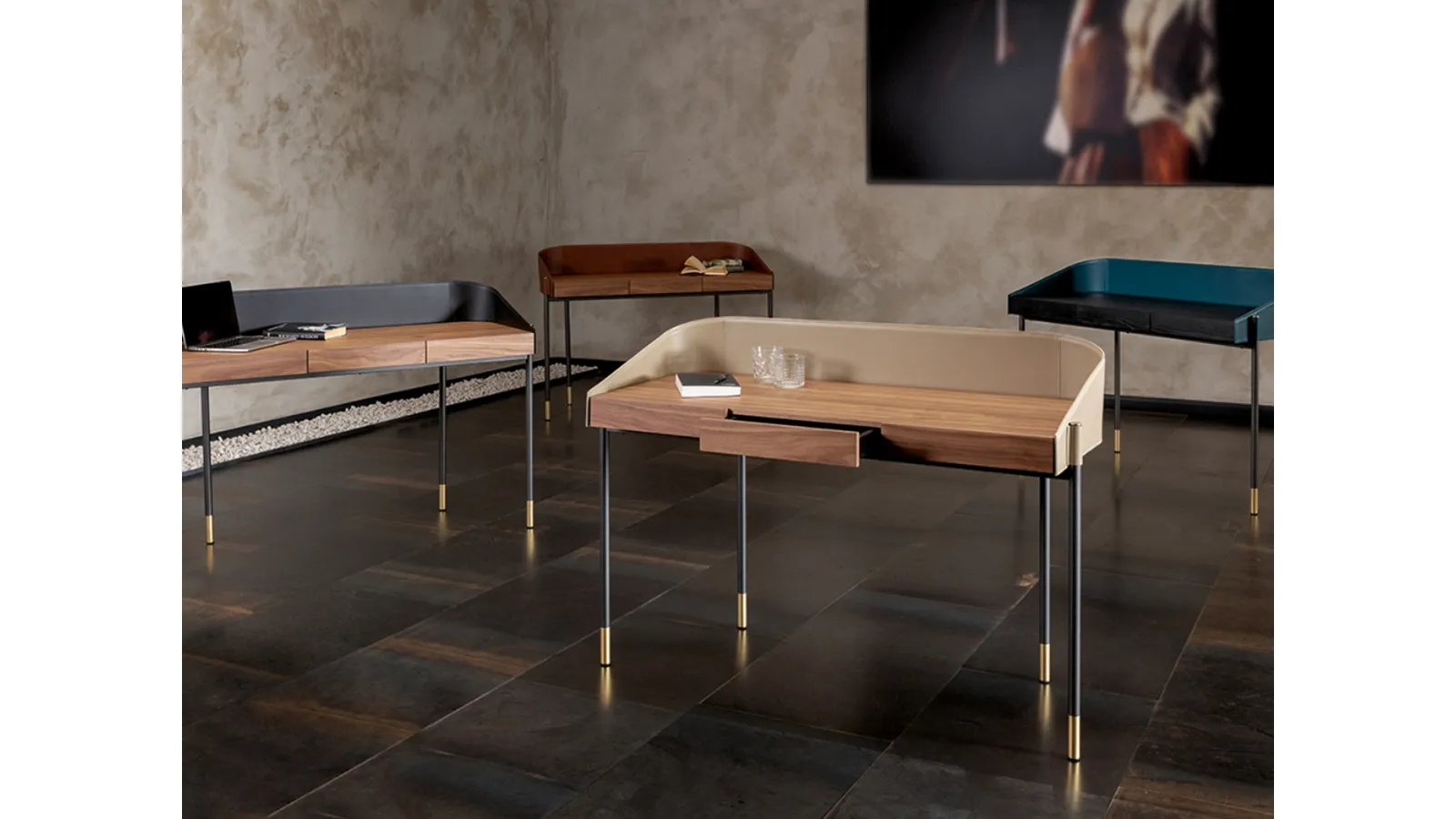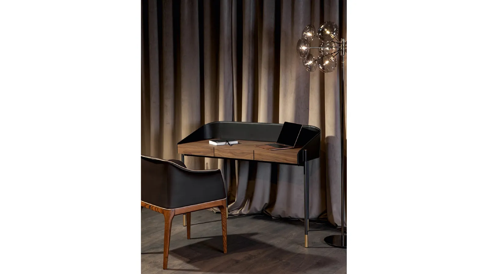 Scopri lo scrittoio Ledor di Tonin Casa, un elemento d'arredo che coniuga con maestria la robustezza del legno e l'eleganza del cuoio. Ideale per ambienti raffinati, questo scrittoio è disponibile con struttura in noce canaletto o frassino nero, completata da un top rialzato in cuoio e una base in acciaio grigio carbone con dettagli in ottone. Offriamo un servizio di progettazione personalizzata e consegna impeccabile nelle aree di Chiasso, Tradate e Milano, garantendo la massima cura in ogni fase. La nostra priorità è assicurarti un acquisto sereno e duraturo, con un'assistenza post-vendita dedicata che valorizza il tuo investimento nel tempo e garantisce la massima soddisfazione.