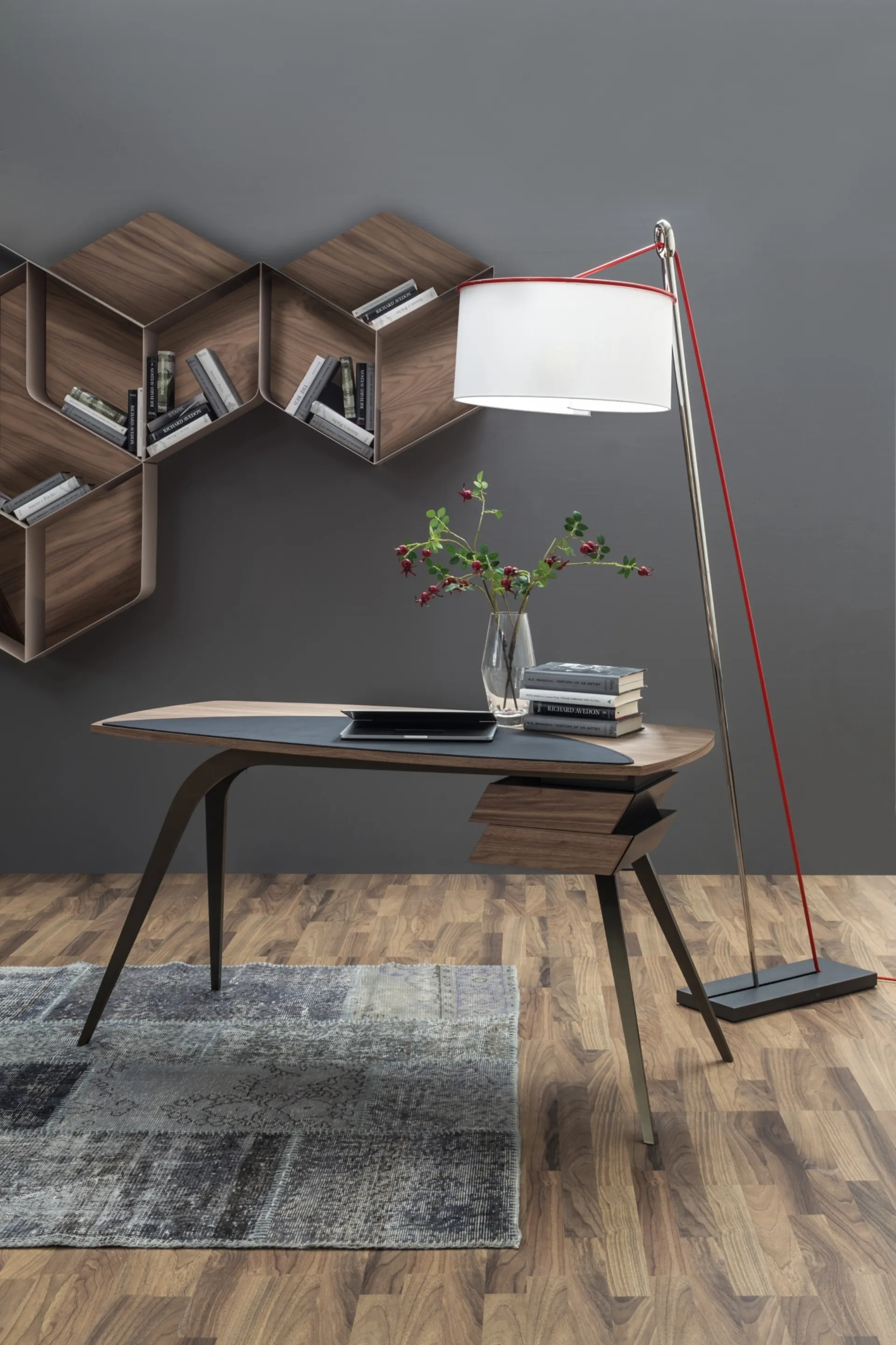 La Scrivania Logos di Tonin Casa rappresenta un'espressione raffinata di design, concepita per integrare estetica e praticità. La sua struttura si distingue per l'impiego di metallo, offerto nella finitura Bronzo Pietra, abbinato a un piano in legno Noce Canaletto. L'aggiunta opzionale di un inserto in pelle eleva ulteriormente il prestigio del complemento, rendendolo ideale per ambienti che prediligono un'eleganza sofisticata e materiali di alta qualità. Per approfondire le specifiche tecniche e le opzioni di personalizzazione, si consiglia di consultare la documentazione dettagliata.