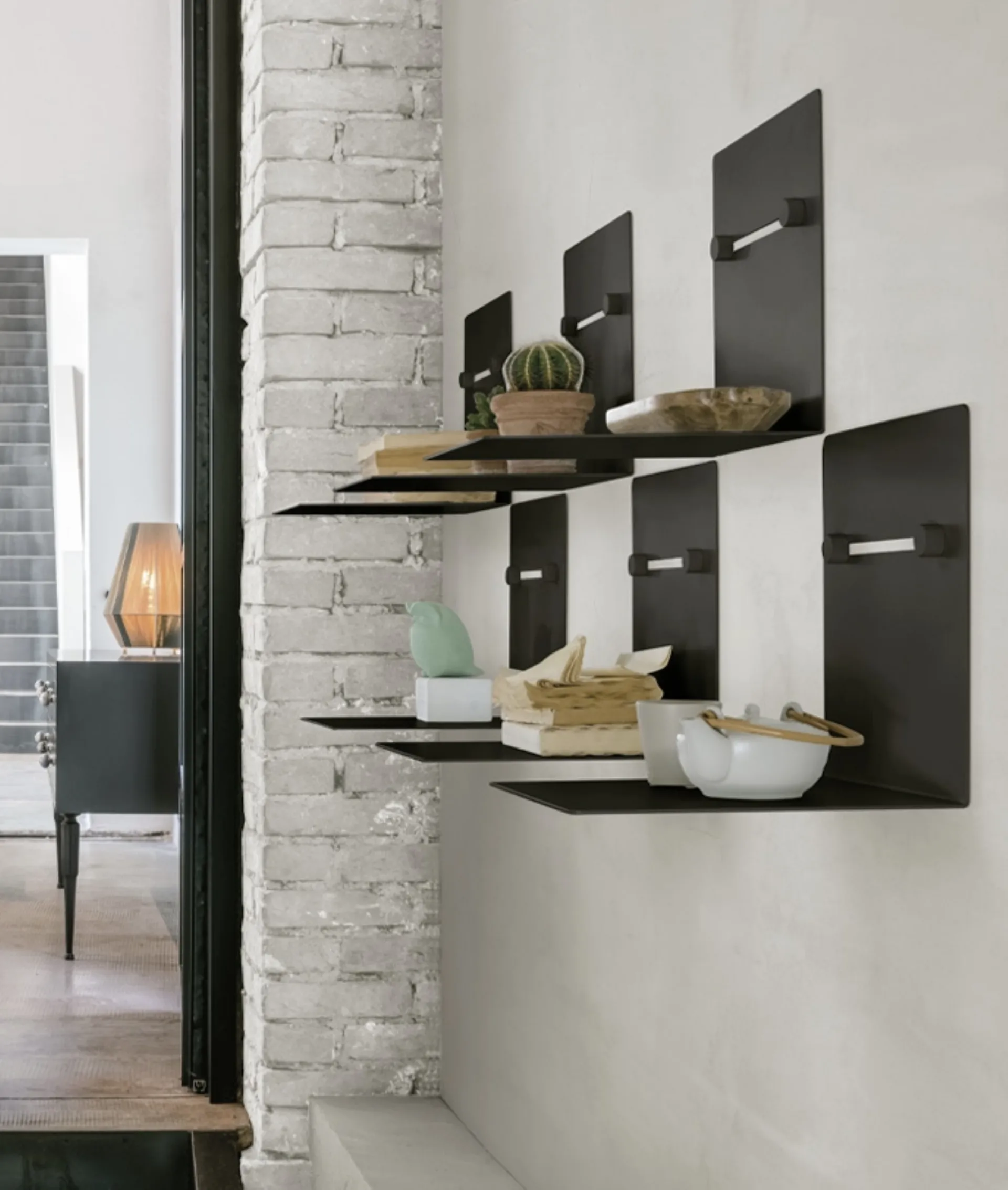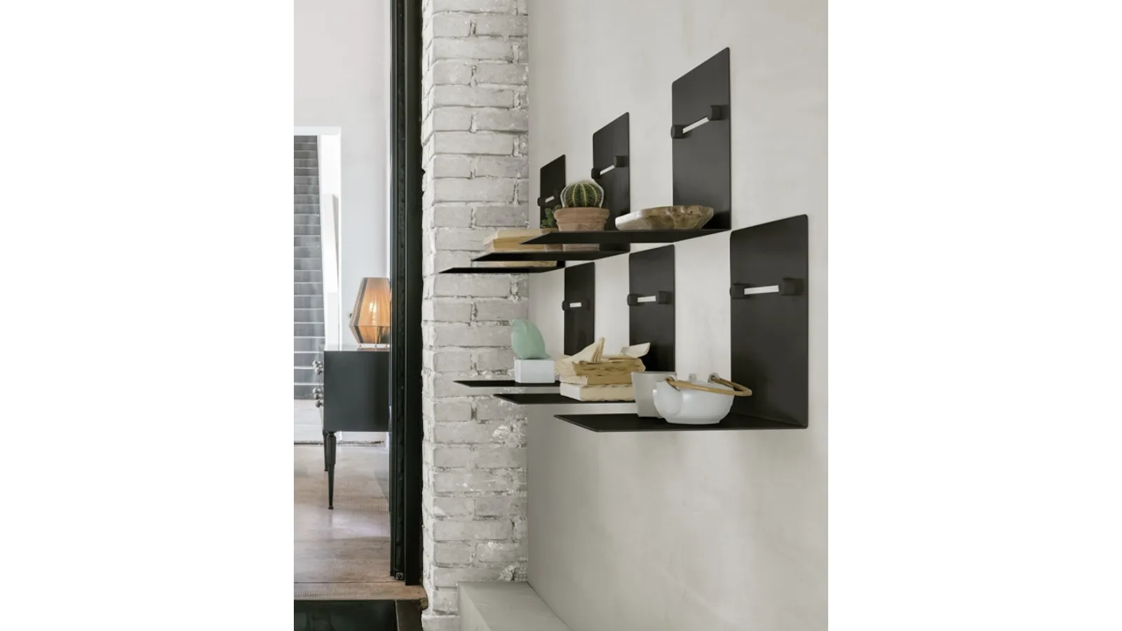 La Mensola componibile Nook di Target Point rappresenta un elemento d'arredo estremamente versatile, caratterizzato da un design contemporaneo che si presta alla creazione di configurazioni personalizzate. La sua struttura modulare offre una libertà progettuale quasi illimitata, consentendo di adattarsi con facilità a una vasta gamma di stili e ambienti domestici. È concepita per coloro che cercano l'equilibrio perfetto tra funzionalità avanzate ed estetica raffinata, fornendo una soluzione pratica e distintiva per l'organizzazione e la decorazione degli spazi. Costruita con una solida struttura in metallo in metallo nero, la mensola presenta supporti di fissaggio a vista che ne sottolineano il carattere industriale e la notevole robustezza. Si rivela ideale per contesti quali soggiorni, studi o zone di passaggio. L'elevata modularità e le opzioni di personalizzazione avanzate rendono questo sistema un punto di riferimento per l'arredo contemporaneo.