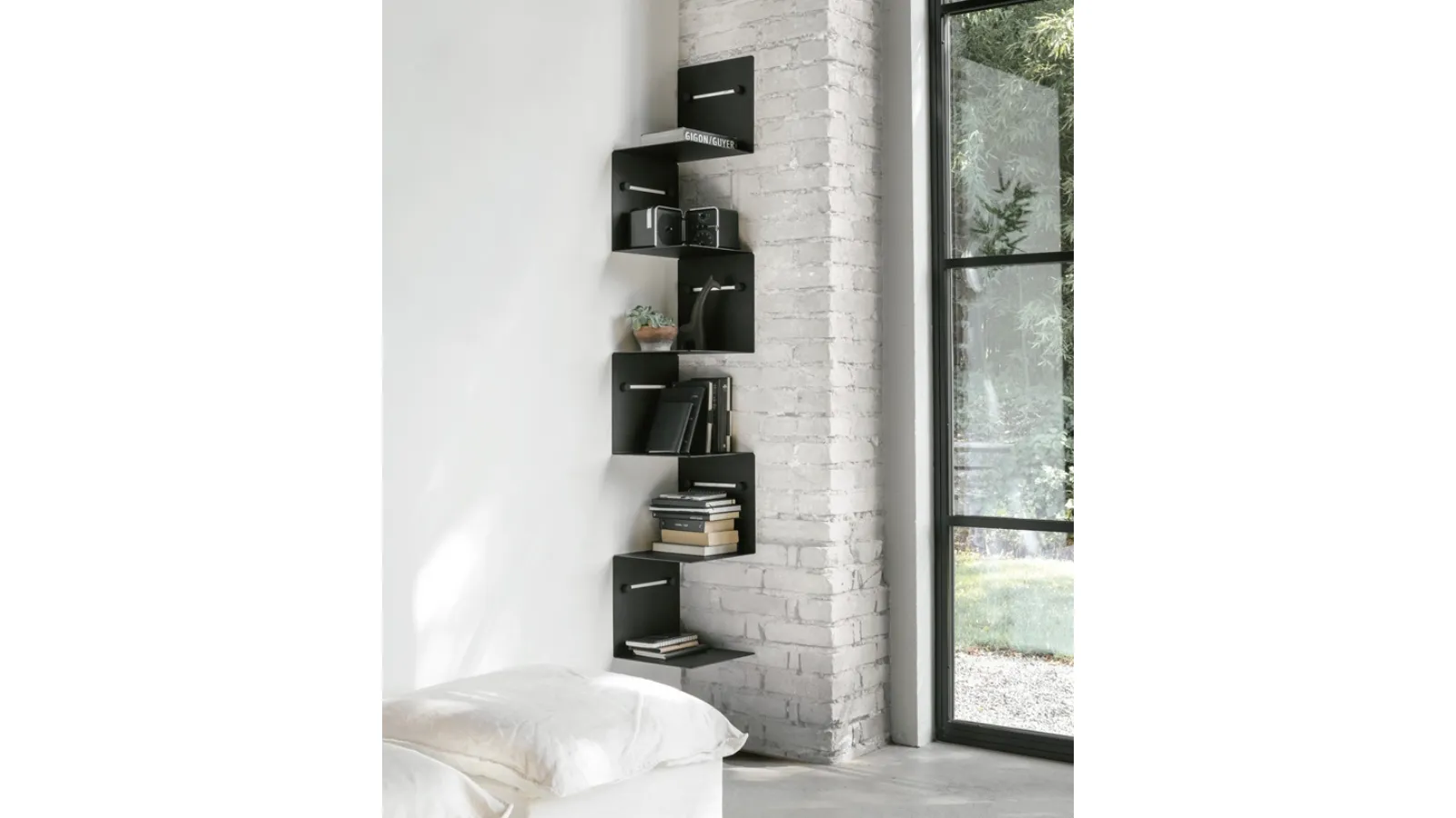 Complements are beautiful and useful accessories for the home, which personalize your spaces with their colors and play a multifunctional and essential role. Target Point has always furnished our homes with furniture and designer accessories, which give the whole a unique charm and make them entirely livable. Visiting our store means seeing firsthand all the most exclusive furnishing compositions of the renowned brand, always synonymous with quality and style. In our store you will find the most exclusive lines of modern Complements that also include high-quality metal shelves with a great aesthetic impact. The model of Target Point's Nook Shelves that you see suits any type of room: it will complete your home decor by mixing functionality and style.