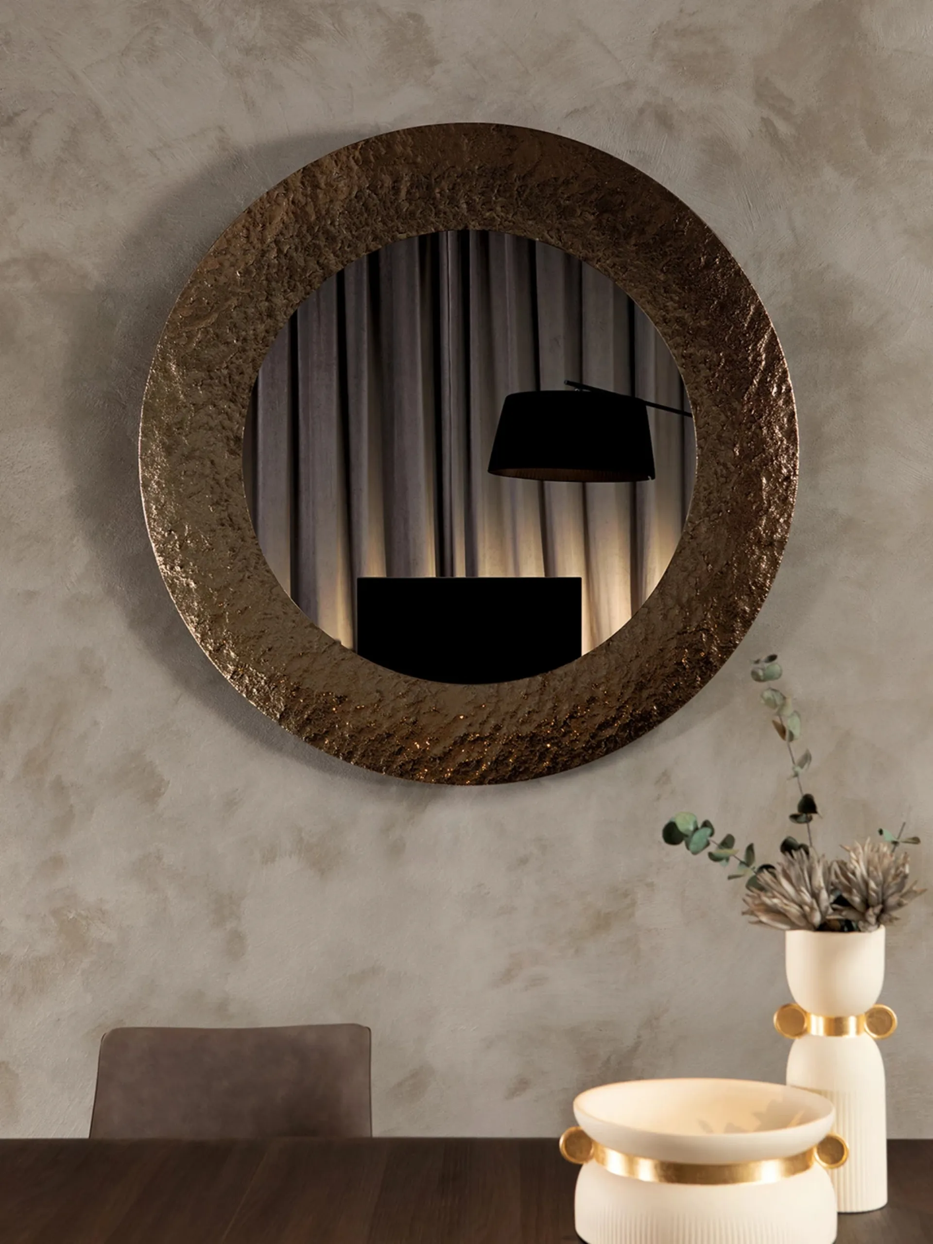 L'esclusivo Specchio Opal di Tonin Casa vi attende nel nostro showroom Rusconi Arredamenti s.r.l. a Cirimido. Questo pezzo d'arredo, caratterizzato da un'inconfondibile lavorazione in vetro martellato, creata da maestri vetrai, è concepito per infondere un'eleganza distintiva in ogni ambiente living. Le finiture disponibili, bronzo e fumè, offrono versatilità per ogni stile. Nel nostro spazio espositivo, ti attendono soluzioni d'arredo che coniugano perfettamente estetica e funzionalità, ideali per valorizzare gli ambienti contemporanei della zona di Cirimido.