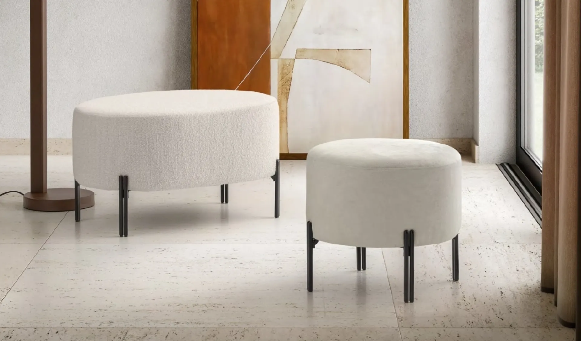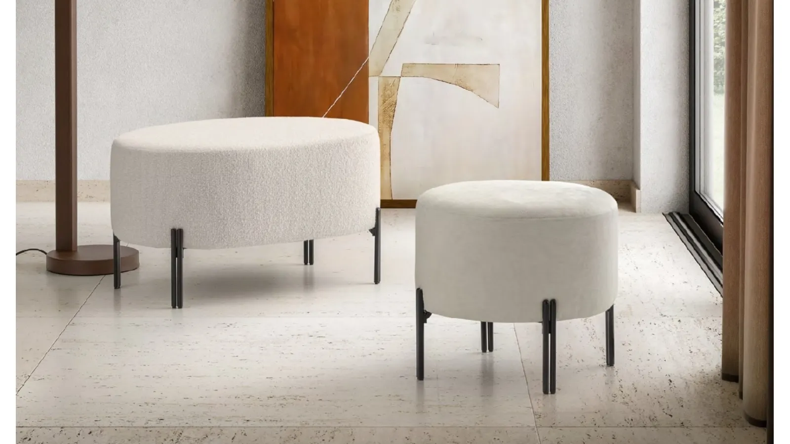 The compositions of high aesthetic value of the Le Comfort brand furnish the habitat with their colors and taste, recreating particular furnishing atmospheres. Very versatile and multifunctional, the modern accessories in fabric respond to disparate functions: they complete the practical qualities and the aesthetic value of the room. In our showroom you will be able to see live the excellence of the brand's modern fabric pouf models, just like this proposal in the photo. Nana and Timis pouf by Le Comfort in fabric: it will add character and charm to an interior furnished with furniture and accessories with modern references. Complements and poufs complete the home furnishings, occupying the space in a useful way and making it welcoming and beautiful to look at.