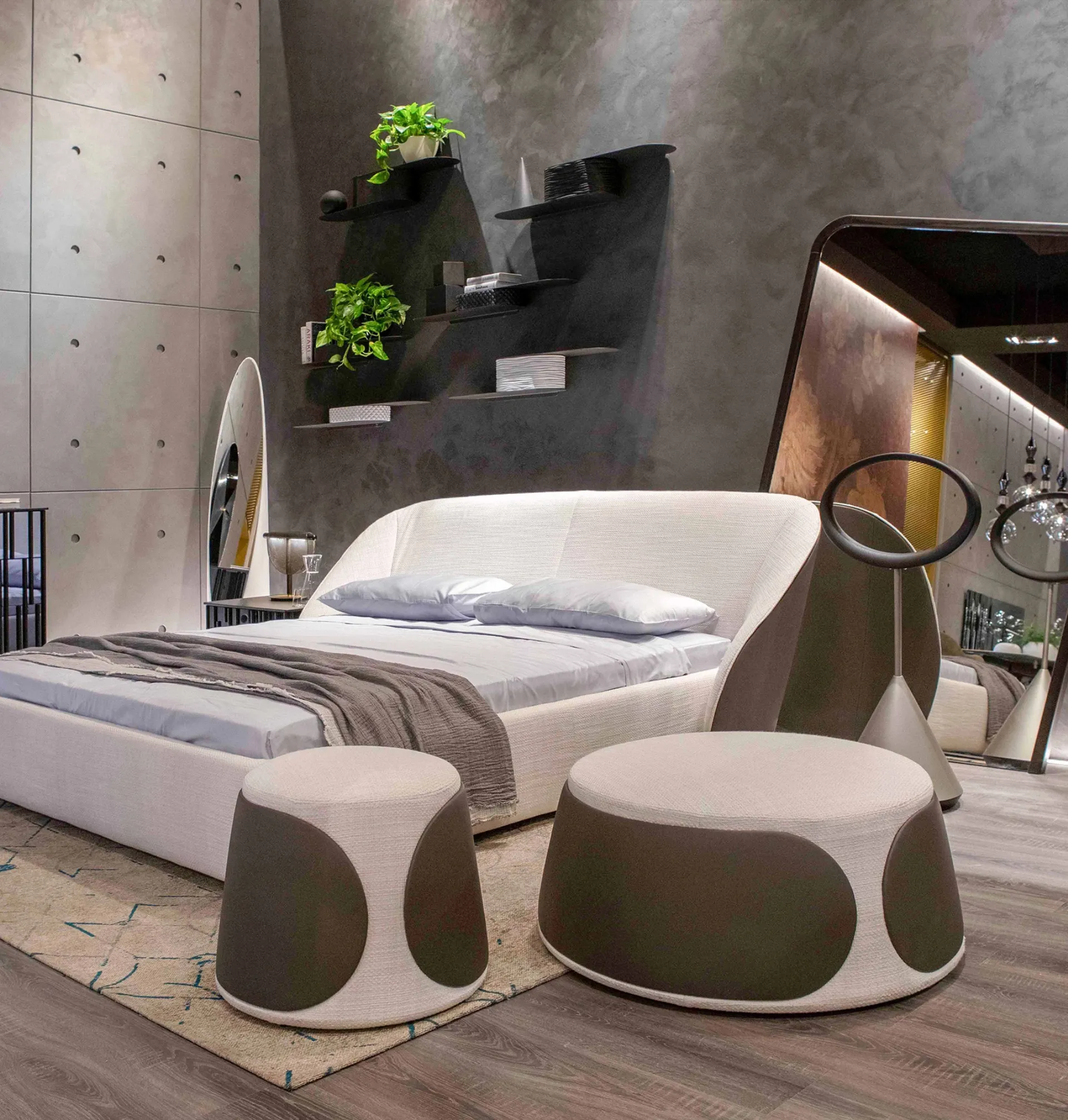 In our showroom you will be able to see firsthand the quality of the modern fabric pouf models from the brand, just like this solution in the photo. The Mama pouf by Tonin Casa in fabric will add personality and charm to a room furnished with modern furniture and accessories. The charming furnishing compositions by the Tonin Casa brand personalize the environment with color and style, recreating specific furnishing atmospheres. Accessories and poufs personalize the home furnishings, occupying space in a useful way and making it very functional and pleasing to the eye.