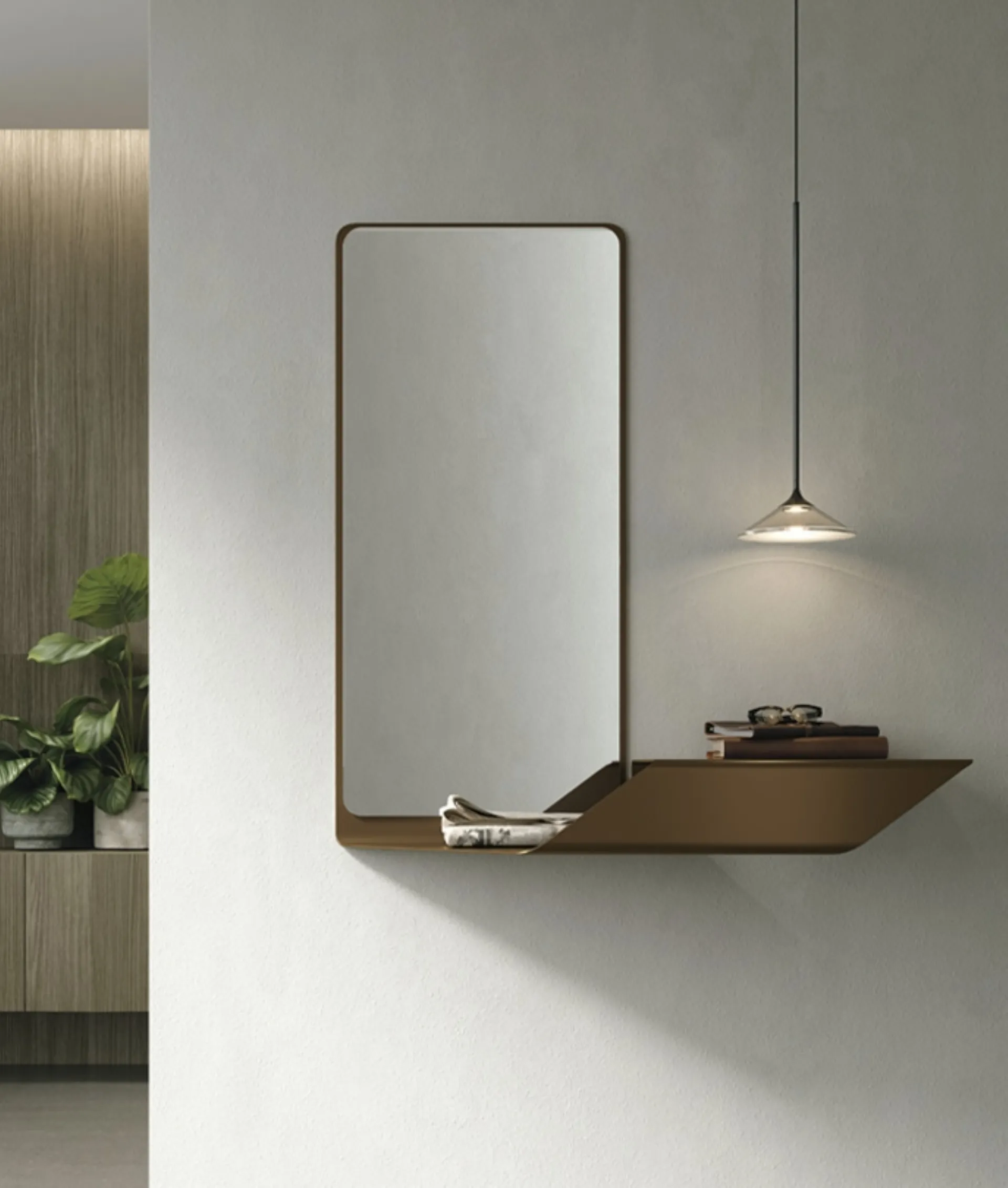 Specchiera Prisma moderna verticale con ripiano in metallo