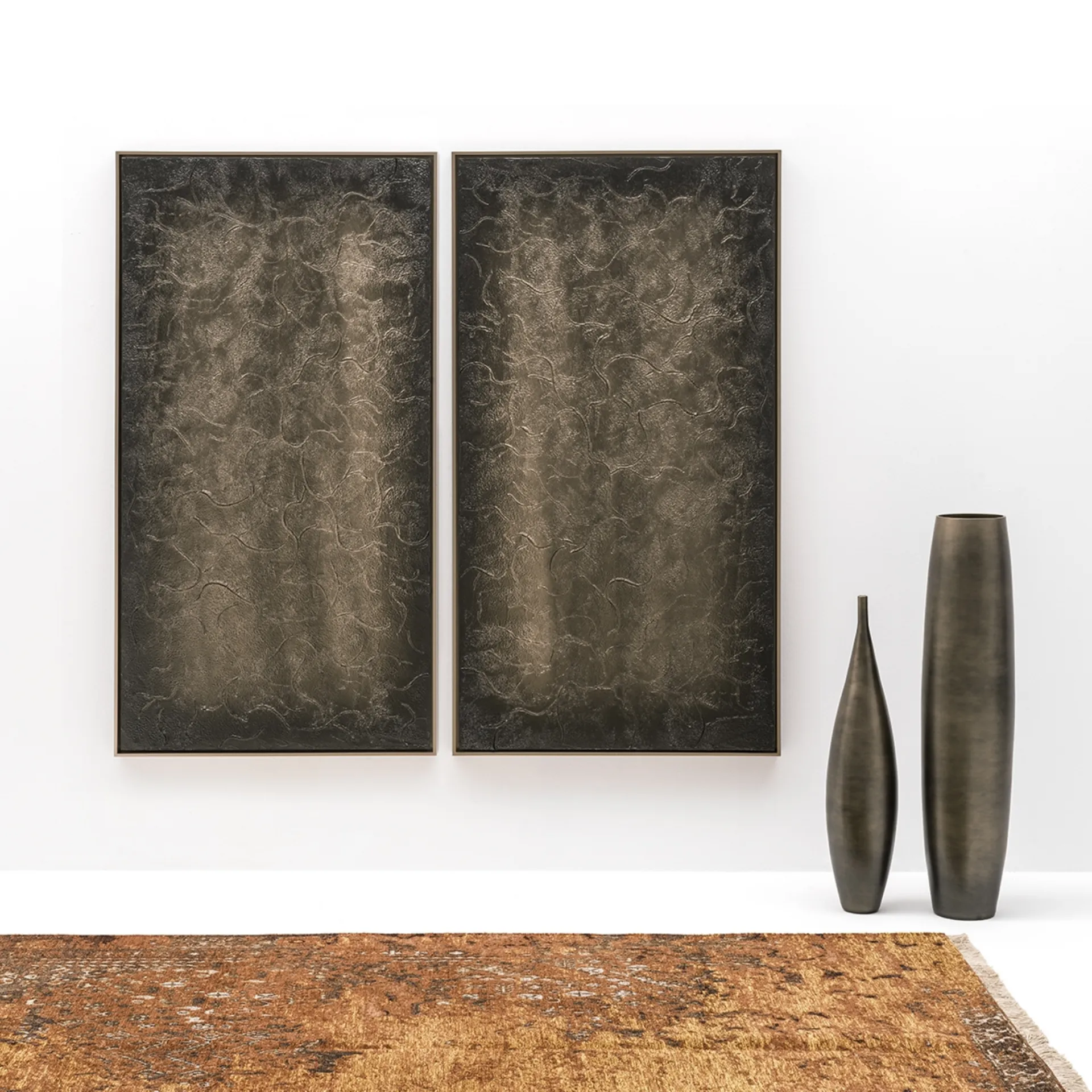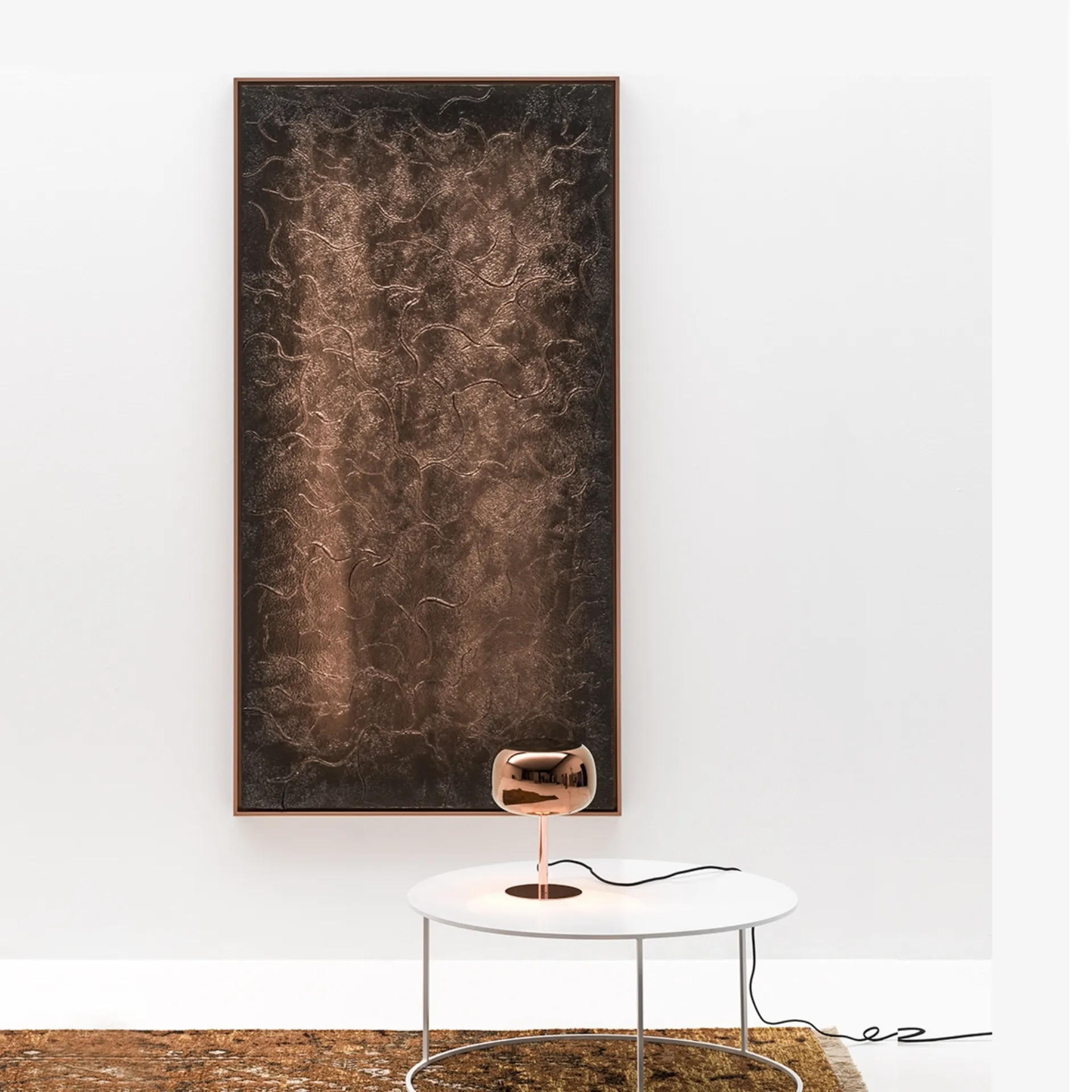Questa scultura da parete, denominata 'Quadro Botticelli' e firmata Adriani e Rossi, incarna un design tridimensionale distintivo. Ogni pezzo è il frutto di un'esecuzione artigianale, caratterizzata dall'impiego di finiture cementizie e da sofisticate verniciature metalliche nelle tonalità Golden Black e Rosy Black. La tecnica di lavorazione a sbalzo conferisce all'opera un richiamo alle antiche metodologie di fusione, aggiungendo profondità e carattere. L'integrazione con la cornice Moma, offerta nelle varianti nero o in tinta, ne completa l'estetica, esaltandone la struttura e la composizione. La meticolosa selezione dei materiali e l'attenzione ai dettagli di finitura garantiscono un'opera di pregevole valore estetico e durabilità nel tempo.