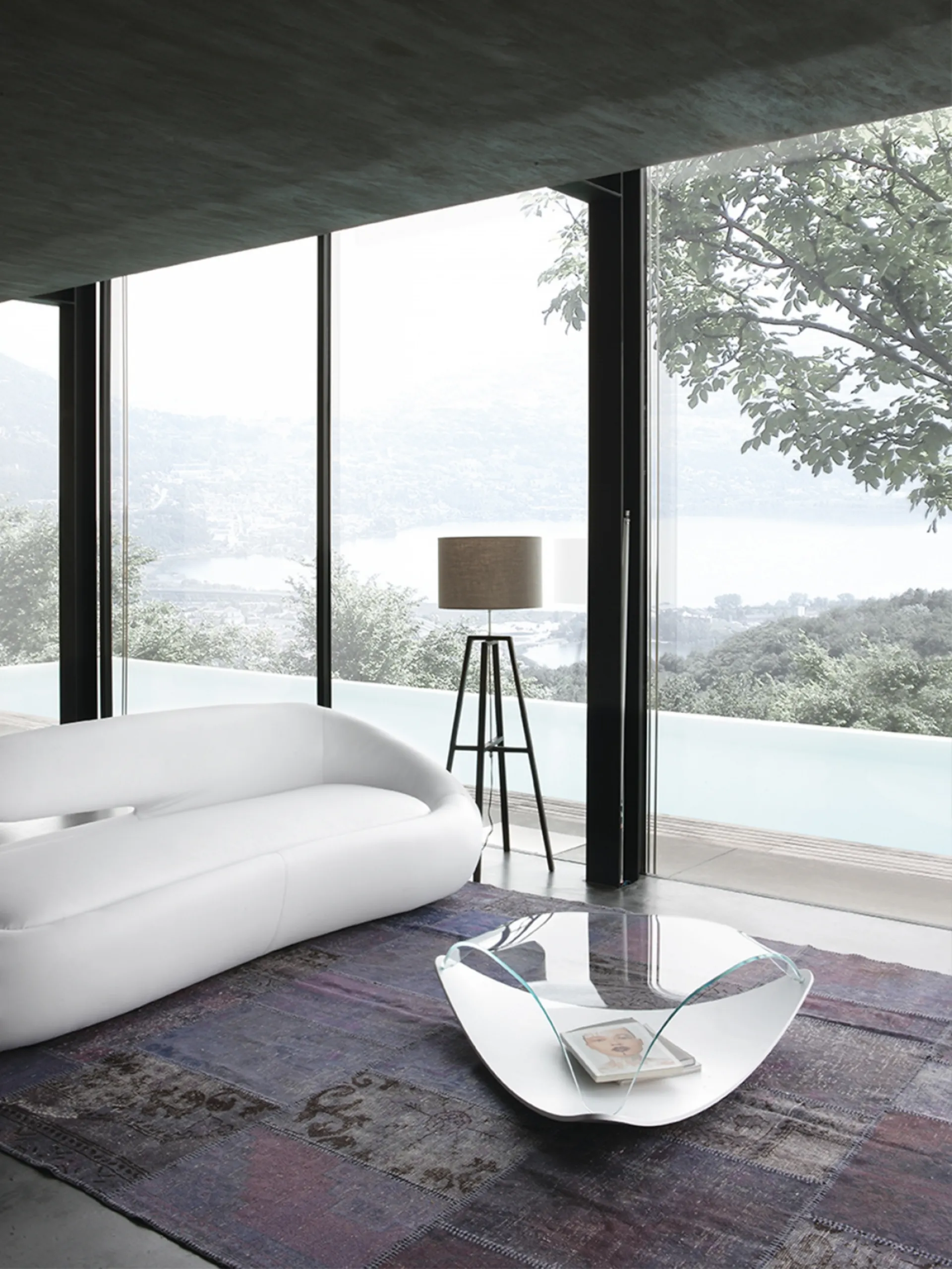 Translate the following sentence into English: glass coffee tables and design accessories to embellish your spaces: the Tavolino Quiet model awaits you.