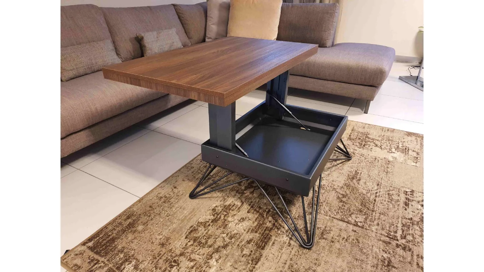 &It is an excellent space-saving solution thanks to the self-braking gas lift mechanism as the table goes from a height based on aedicm H.32 to get to a height of 64cm, convenient for eating.