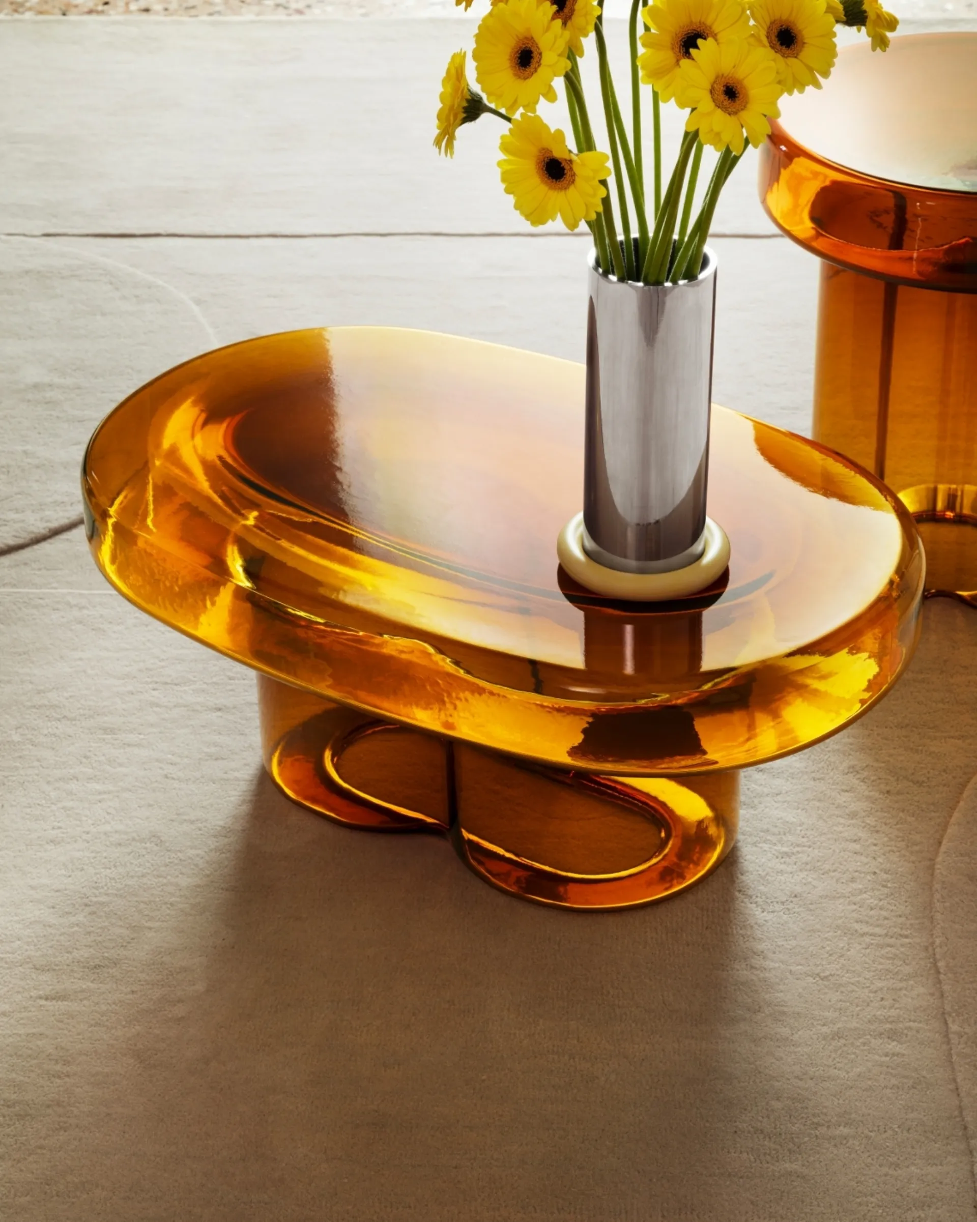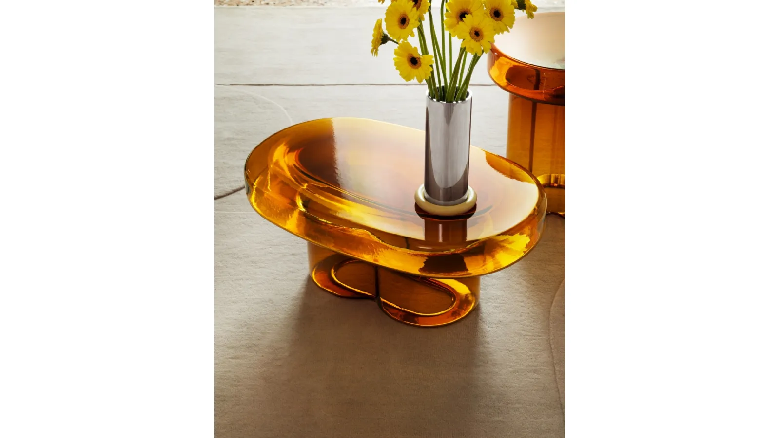 Discover our line of design accessories and coffee tables, like the Soda Oval model shown in the image.