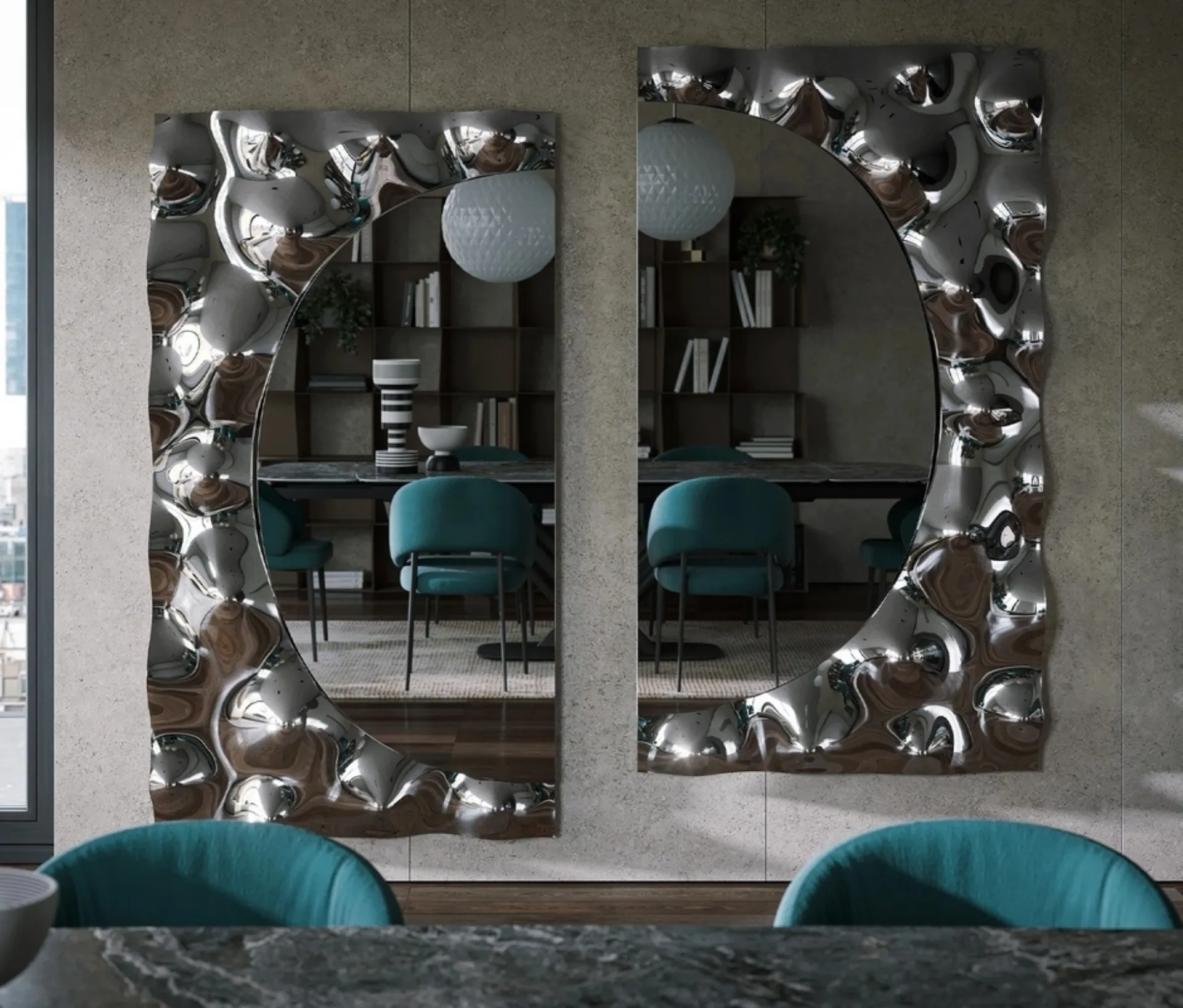 La Specchiera Afrodite, opera di Tonin Casa, si distingue per la sua raffinata cornice in vetro fuso, la cui lavorazione artigianale riproduce con fedeltà il dinamismo e la fluidità delle onde marine, arricchita da dettagli organici che evocano l'elemento acquatico. Questo complemento d'arredo è stato concepito per offrire una notevole versatilità, consentendone l'integrazione armoniosa in molteplici contesti stilistici e funzionali, e instaurando una relazione visiva intrigante con l'osservatore. Un inserto semicircolare, posizionato strategicamente, introduce un'interruzione nella simmetria geometrica, aprendo la possibilità a configurazioni modulari e alla creazione di composizioni personalizzate con l'impiego di più unità. La scelta di materiali di pregio e l'accuratezza nella manifattura sono garanzia di un prodotto dall'elevata resistenza e di un design intramontabile, aspetti fondamentali per un investimento duraturo nel tempo.