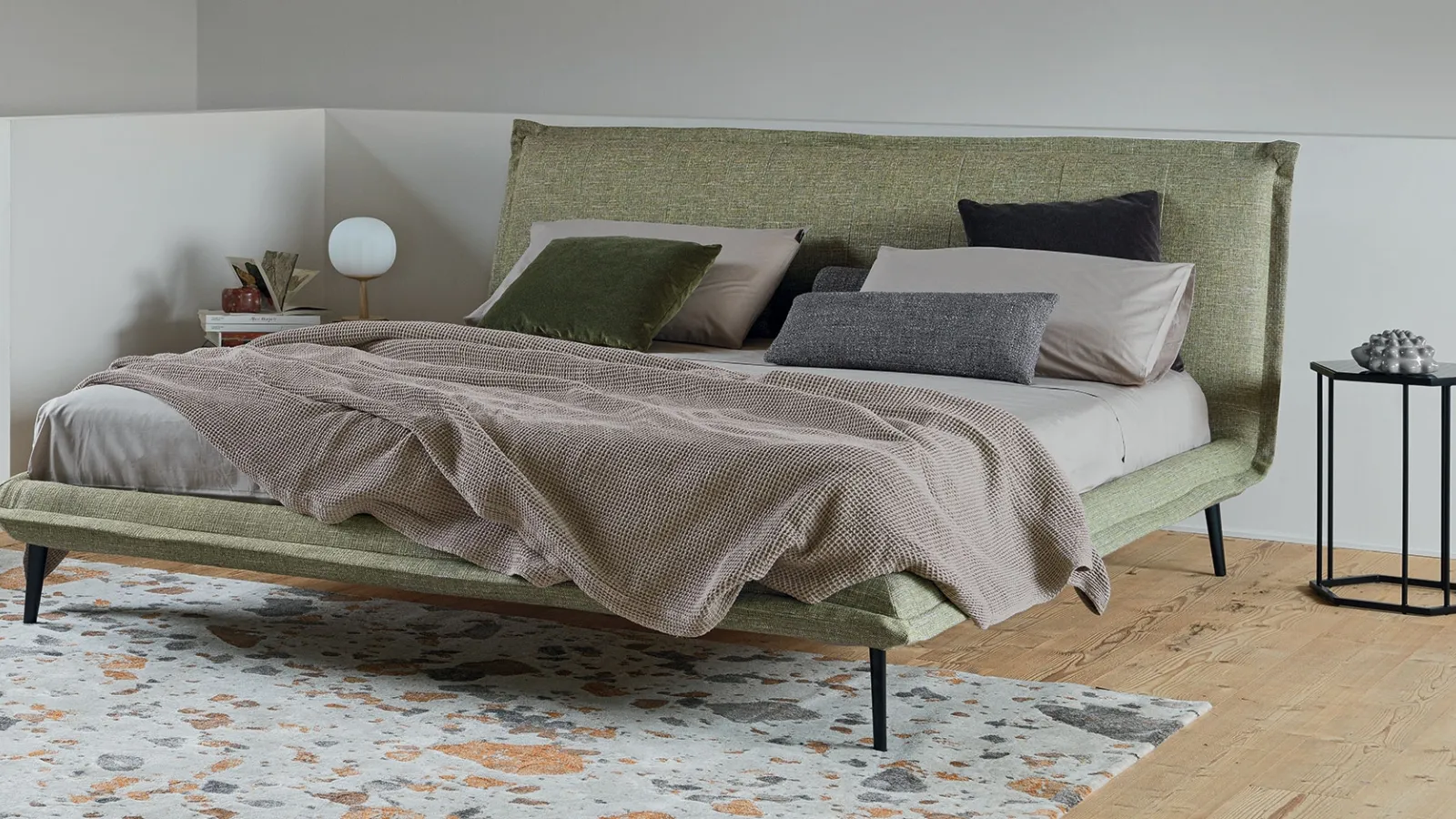 Discover our collection of modern accessories and home linens such as the Primavera model in the image
