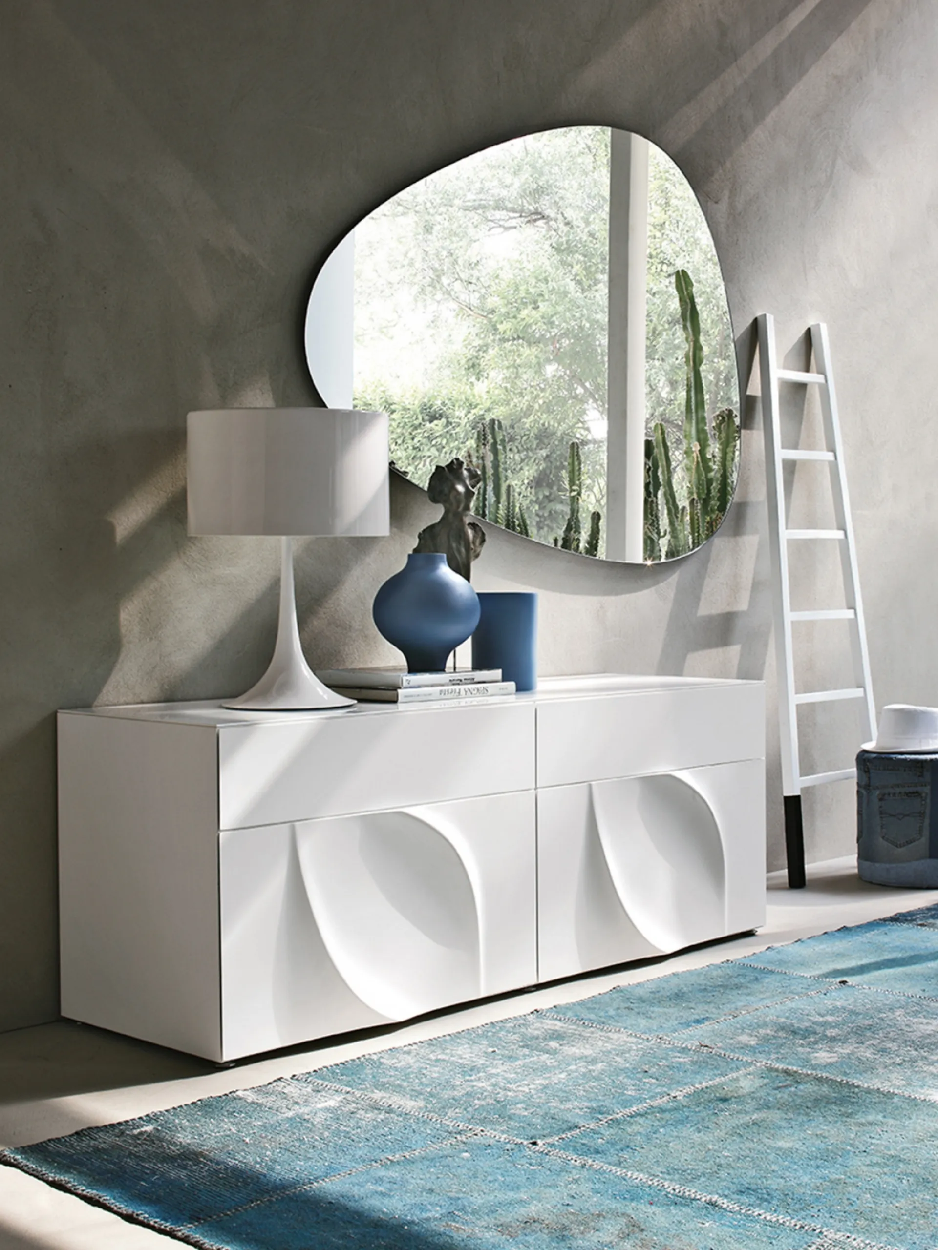 Stone modern mirror by Tonin Casa without frame: it will give character and charm to a room furnished with furniture and accessories with modern references. Complements and mirrors personalize home furnishings, filling the space in a useful way and making it welcoming and beautiful to look at. Particularly versatile and multifunctional, the modern frameless complements perform disparate functions: they complete the practical qualities and the aesthetic value of the environment. In the shop you will be able to see firsthand the quality of the brand's modern frameless mirror models, just like this proposal in the photo. The charming compositions of the Tonin Casa brand personalize the environment with their colors and taste, recreating particular furnishing atmospheres.