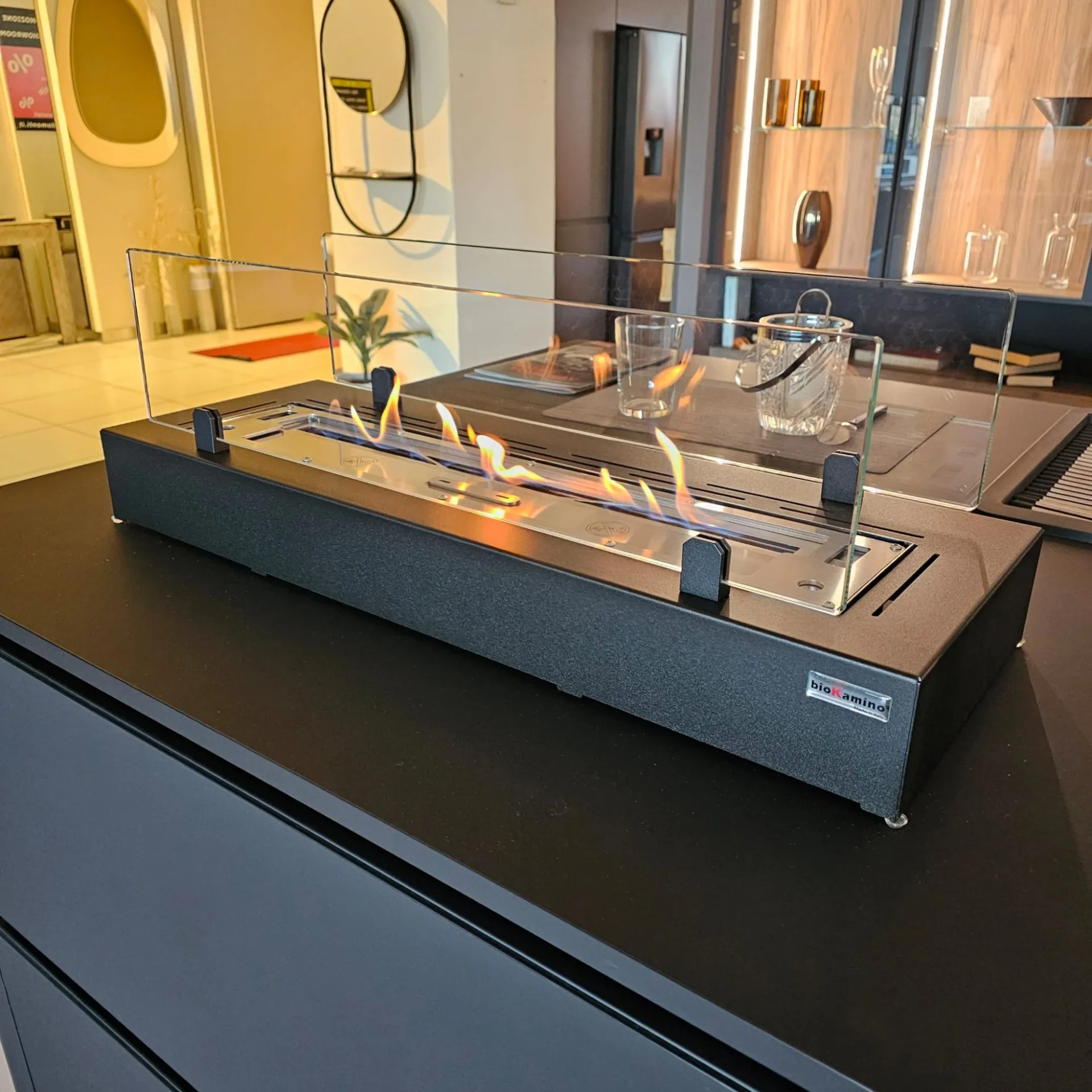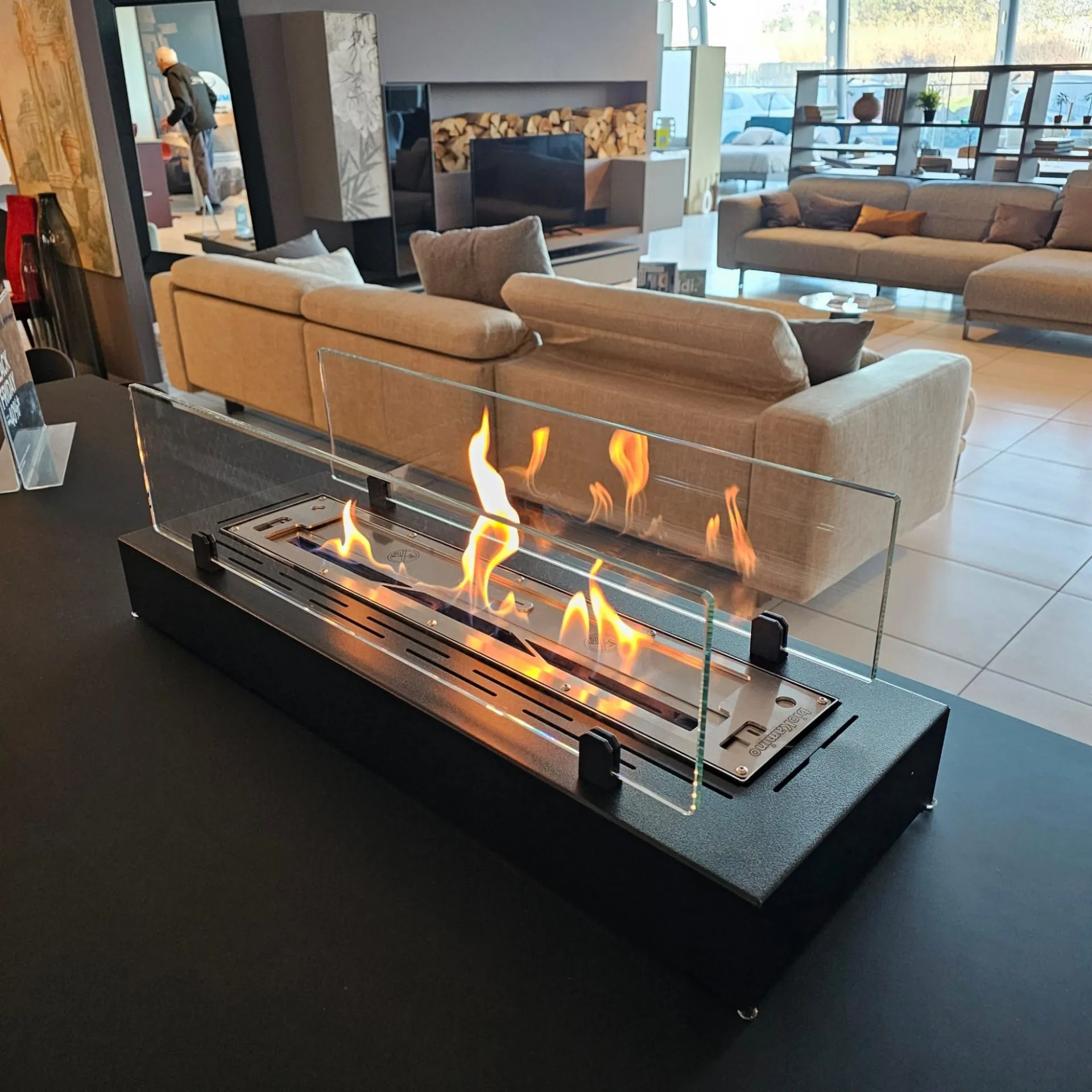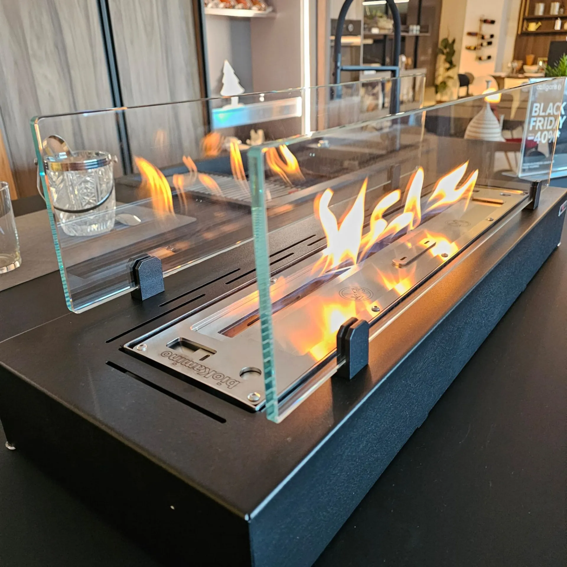 Tabletop bioethanol fireplace complete with burner, black color, cm. 75x26h.x26prof. Bioethanol tank included.