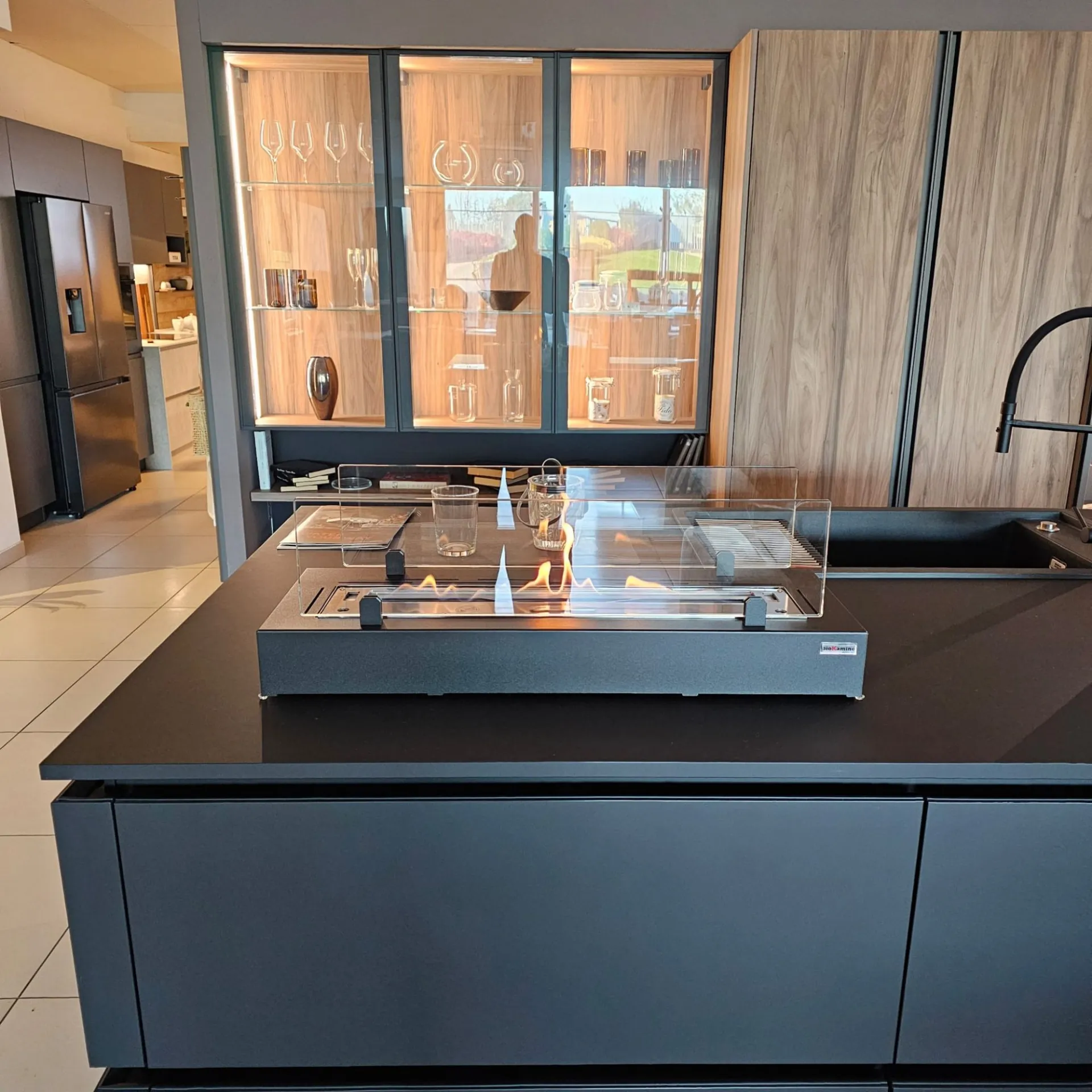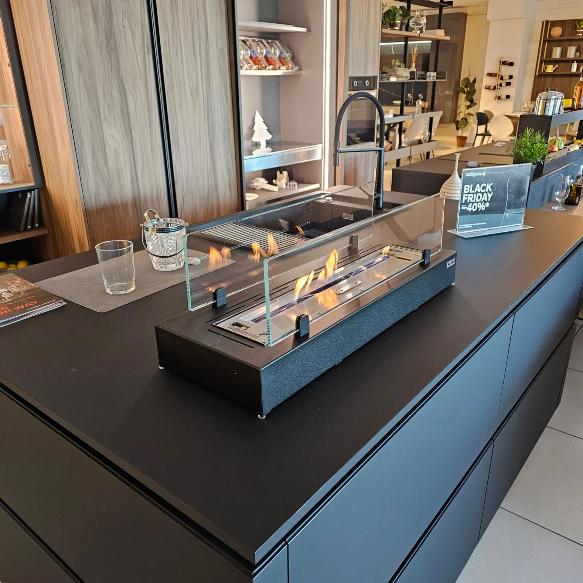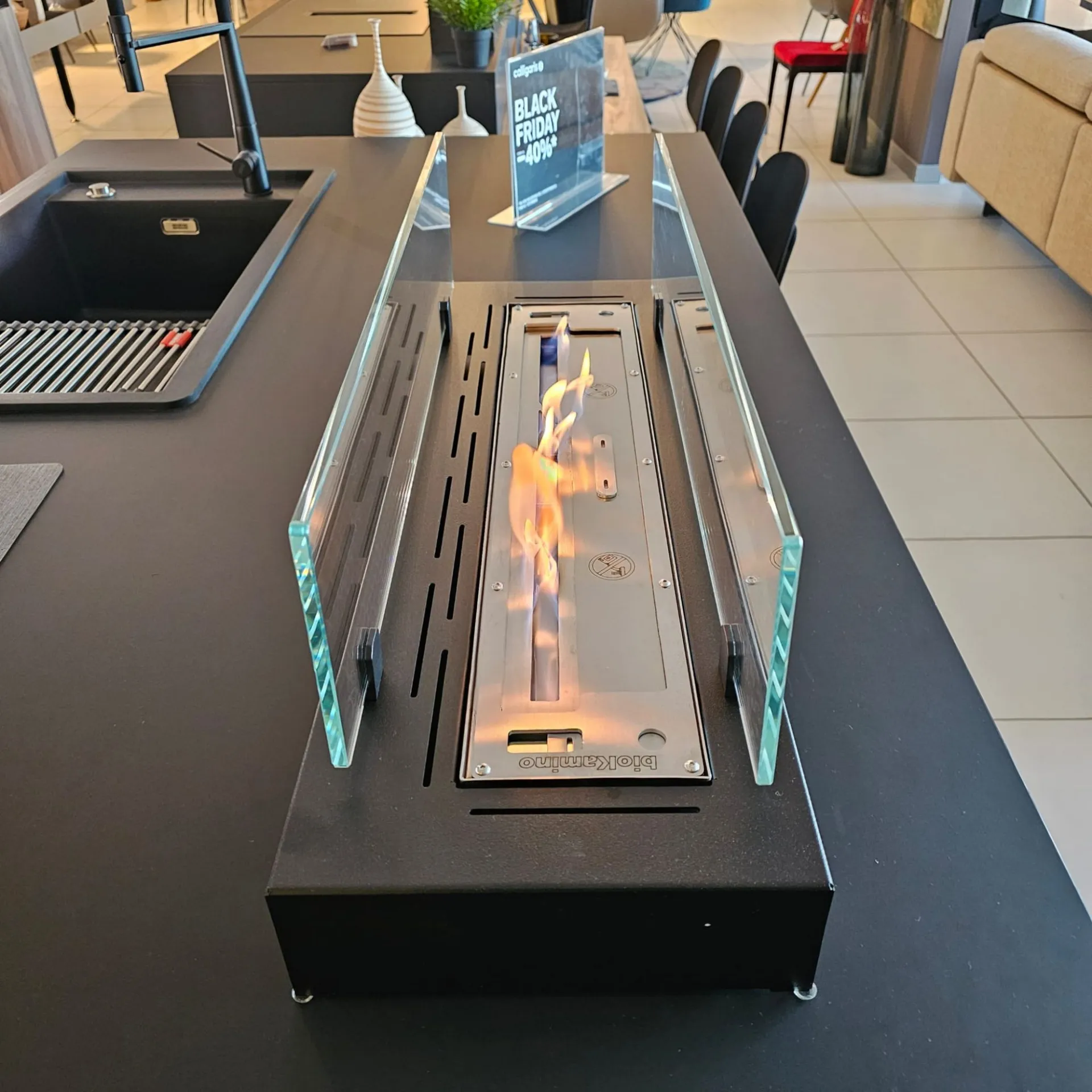 Tabletop bioethanol fireplace complete with burner, black color, cm. 75x26h.x26prof. Bioethanol tank included.