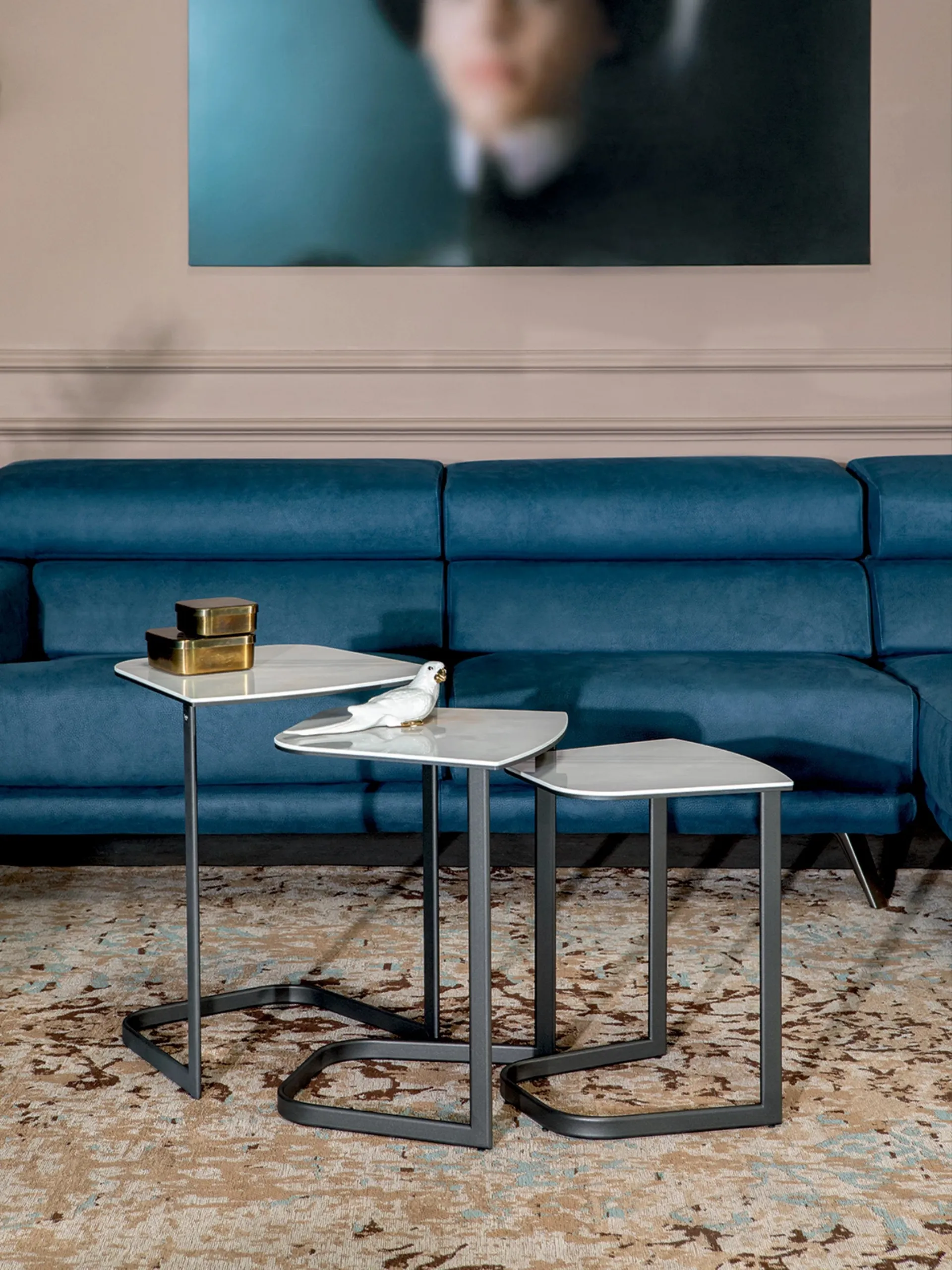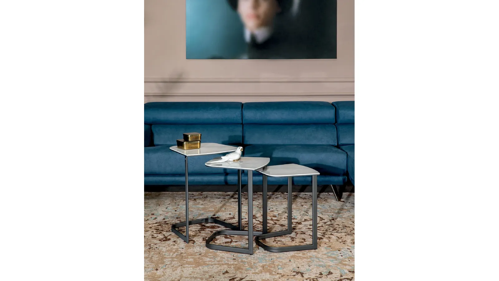 In the showroom, you can personally view all the most exclusive compositions of the renowned brand, including those complete with modern gres coffee tables. From the bedroom to the living room, these accessories are essential elements to best complete the practical qualities and aesthetic qualities of the premises. The Tonin Casa brand is synonymous with excellence and style: paying us a visit means relying on the company's years of expertise and dedication. Class and practicality distinguish the company's multiple solutions, including this valuable aesthetically pleasing Rim stackable coffee table solution from Tonin Casa in gres. To best enrich the interior spaces, all that is needed is a skillful touch by adding some quality accessories among the rest of the furnishings.