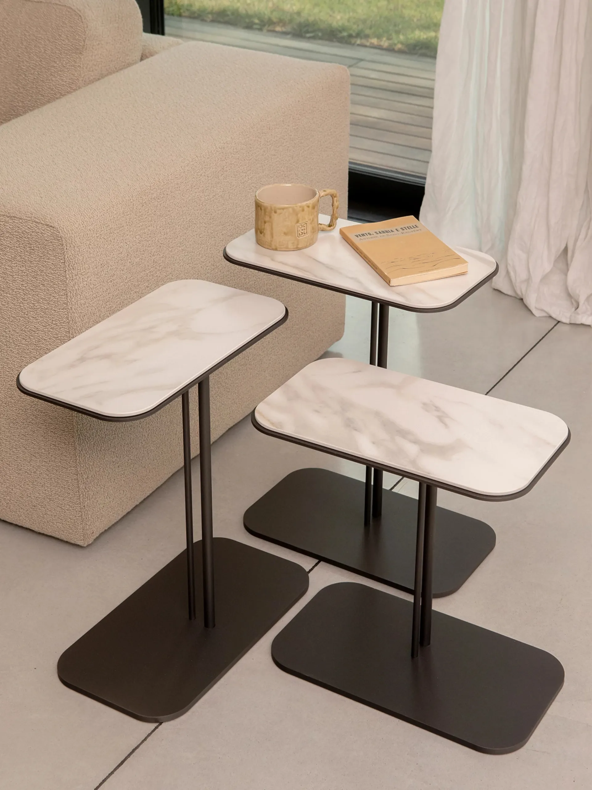 Il tavolino Skyline di Tonin Casa si distingue come un elegante trittico di tavolini in metallo, pensati per arricchire con versatilità e stile il tuo living. Con le sue forme rettangolari e il design essenziale, offre soluzioni dinamiche grazie alle diverse altezze disponibili, adattandosi perfettamente a ogni contesto. È possibile scegliere tra finiture metalliche esclusive come il grigio carbone, il bronzo pietra o l'oro, con la possibilità di un raffinato top in porcellana. Il nostro servizio di progettazione personalizzata e consegna a domicilio è attivo e garantito in molteplici località, incluse aree come Como, Varese e Milano. Offriamo un'assistenza completa per assicurarti un'esperienza d'acquisto serena, con la tranquillità di una garanzia estesa e un supporto post-vendita sempre disponibile per ogni tua esigenza.