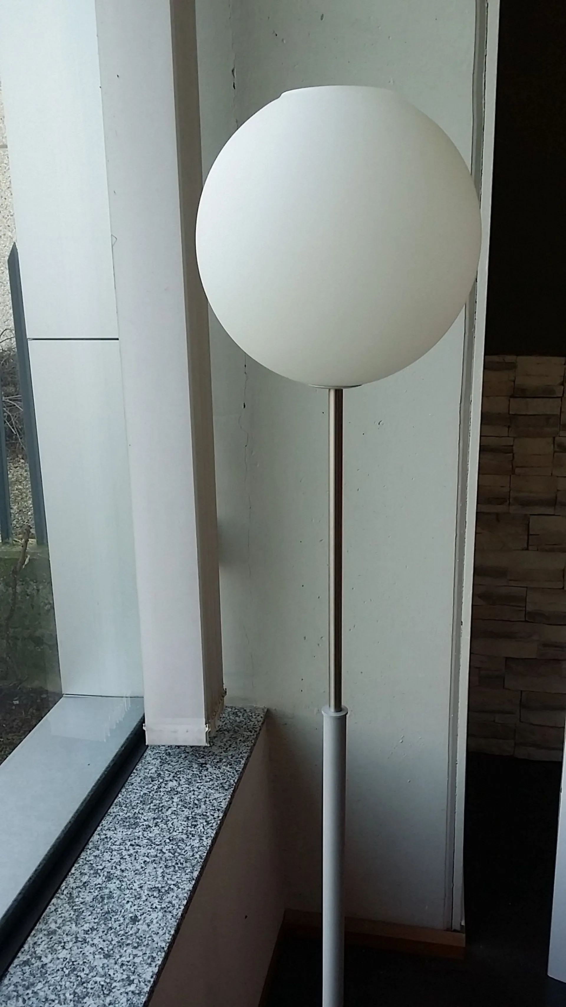 Ballèunalampadadaterramodernaeoriginalenelleforme.Losteloèmoltoleggeroesteticamente,inmetalloverniciatogoffratoalluminionellaparteinferioreesatinatonellapartesuperiore,ilparalumeèinvetrosatinatolavoratoartigianalmenteaformadibocciaapertanellapartesuperiore.E'unalampadamoltofineediscretachepuòessereposizionataovunquepercrearelucesenzamodificarel'equilibriodell& # 39; arredointornoasè .RusconiDesignArredamentiè inCirimido (COMO) a large showroom where there are many very many lamps on offer as well as the originals proposed& # 39; furnishingpersonservedirealmegliolacasaaccording toprigustandprigustintheprigusto.it