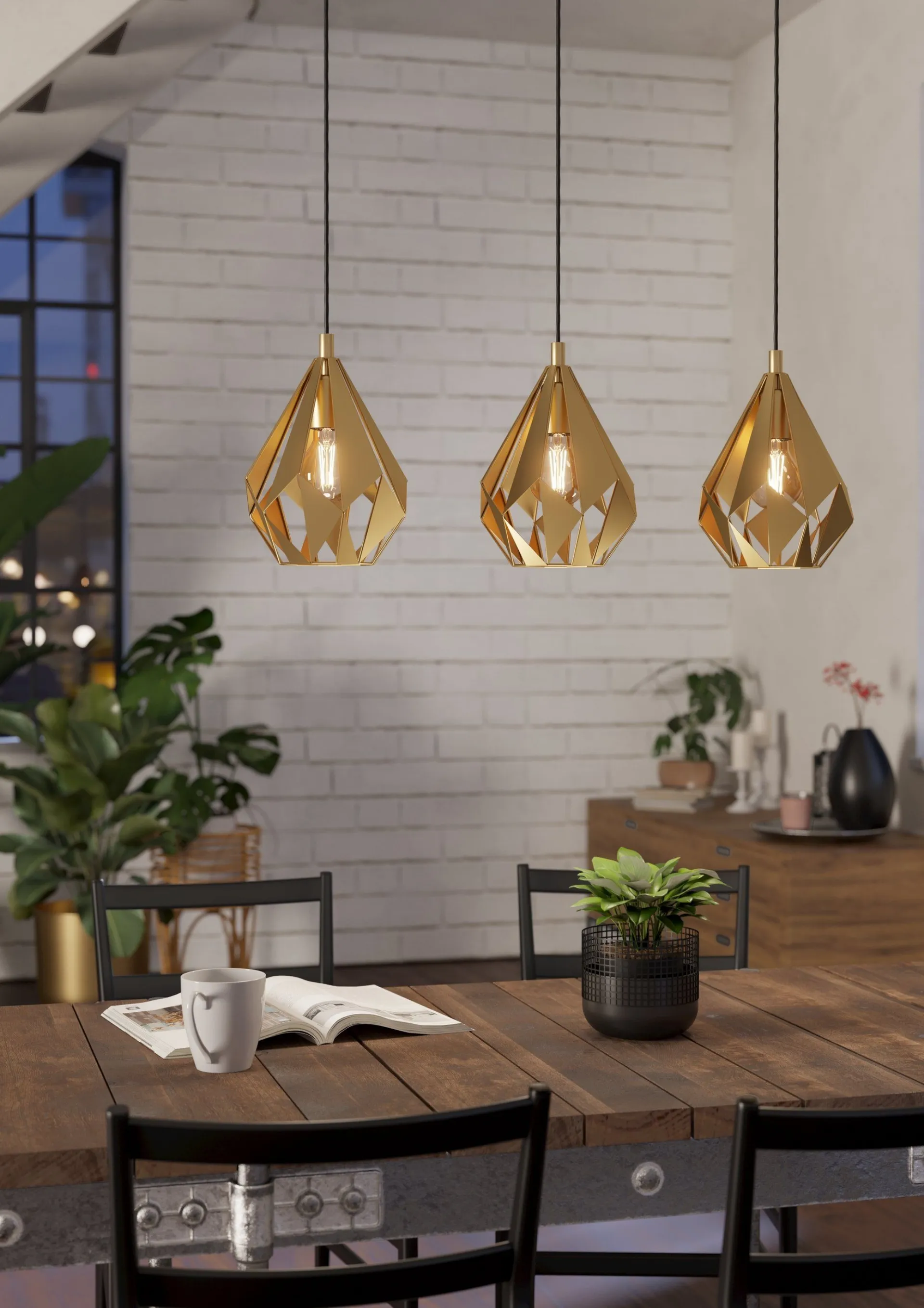 The world of lamps communicates with a special alphabet but at the same time dialogues with home furnishings, combining the qualities of practicality with aesthetic ones. In the store we present the most efficient lamps on the market to meet every request: the most beautiful quality proposals await you. The fixture in the photo emits a pleasant light and with its lines fits into rooms with multiple living contexts, always enhancing the aesthetic value to the fullest. Eglo presents a variety of indoor pendant lamps capable of characterizing spaces with a high aesthetic content, always in top quality materials.