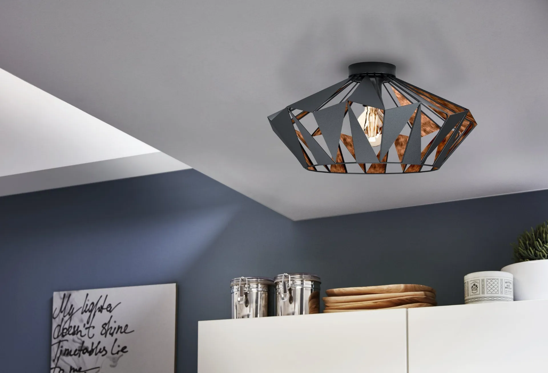 The world of lamps has its own specific language, but it simultaneously interacts with home furnishings, combining practicality with aesthetics. Eglo offers various indoor ceiling lamps that can define spaces with a good aesthetic effect, always using high-quality materials. It does not limit stylistic combinations: Eglo's Carlton ceiling lamp in metal stands out for the quality of its materials and technology. The lamp in the photo emits a pleasant light and its shape allows it to fit into rooms with multiple moods, always highlighting the aesthetic value to the fullest.