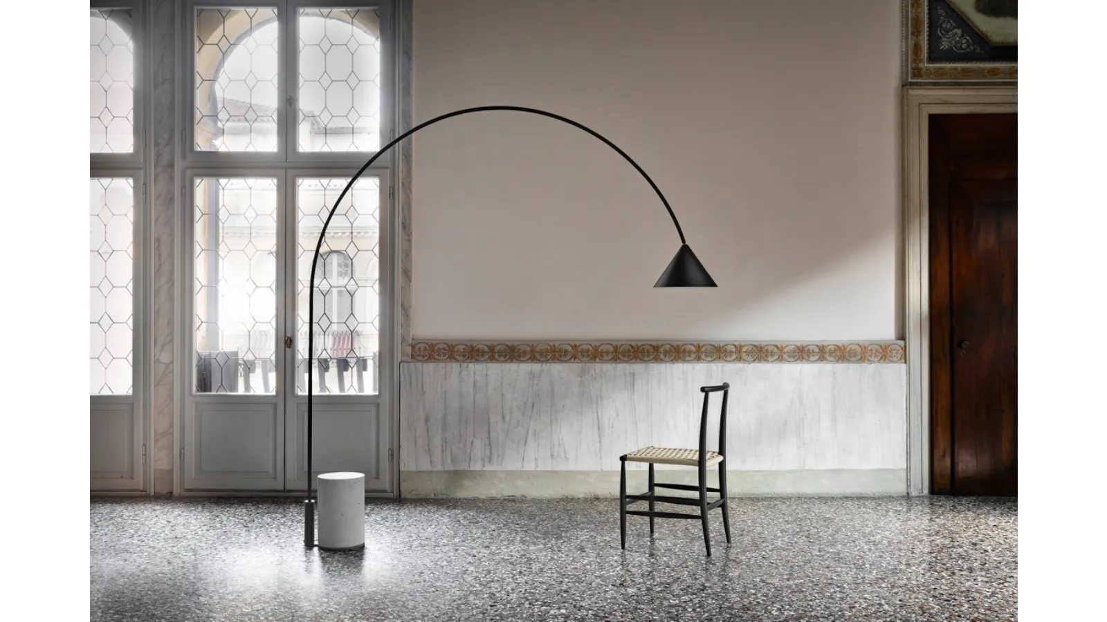 La lampada da terra Ozz rappresenta un'innovativa fusione di elementi luminosi e materici, con la pietra come protagonista. Il suo imponente arco la rende un elemento di forte impatto visivo e funzionale nell'ambiente. La struttura si fonda su una robusta base in calcestruzzo, da cui si eleva un fusto elegantemente curvato che conduce al paralume, creando una dinamica scenografica. Per qualsiasi esigenza di integrazione progettuale o per approfondimenti sulle configurazioni disponibili, il nostro team tecnico è a completa disposizione.