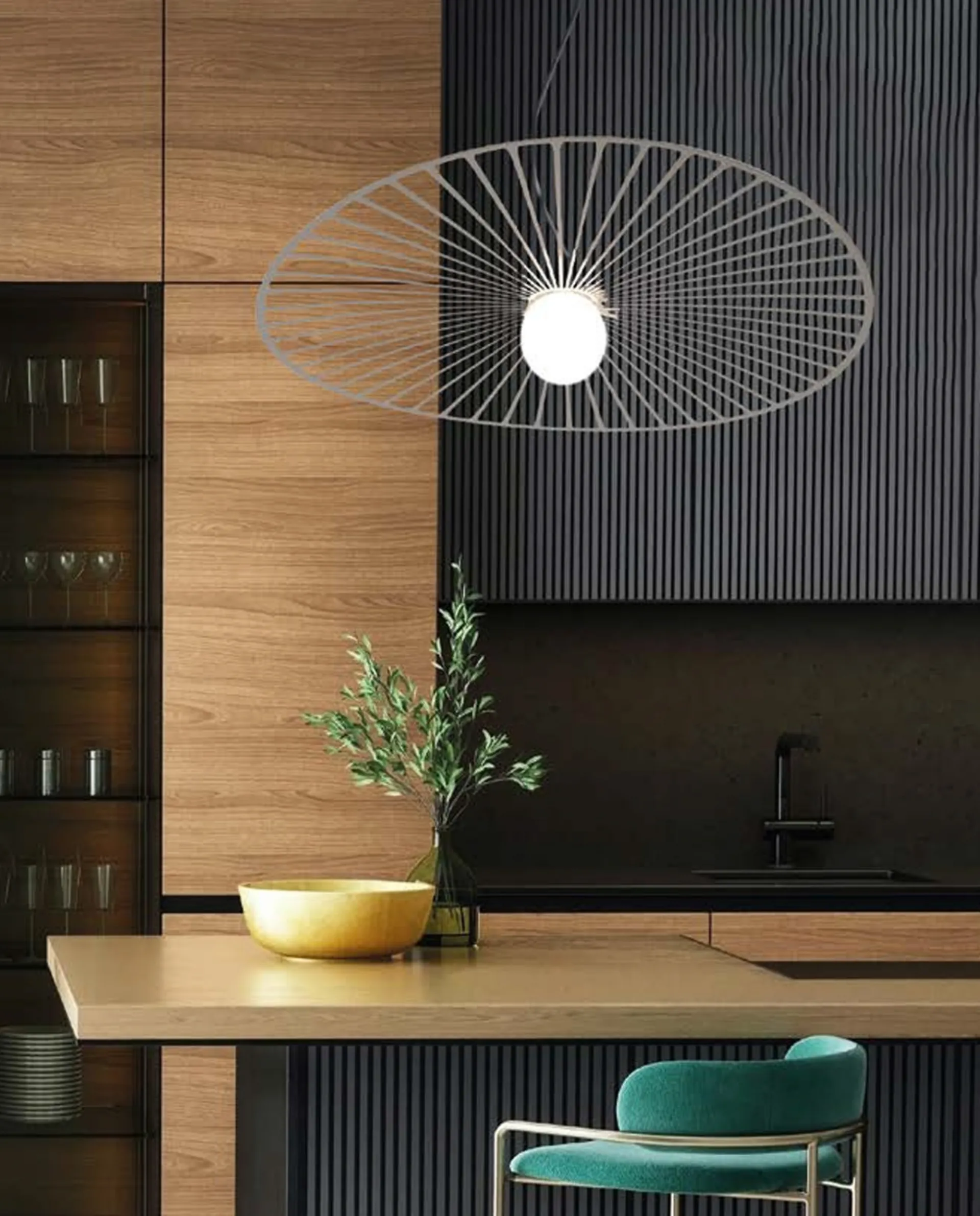 Quali vantaggi offre un'illuminazione a sospensione come il modello "Rays" nel design d'interni?Le lampade a sospensione, come la "Rays", sono perfette per creare un punto focale visivo e definire aree specifiche all'interno di un ambiente. Offrono un'illuminazione efficace e contribuiscono significativamente allo stile e all'atmosfera della stanza.