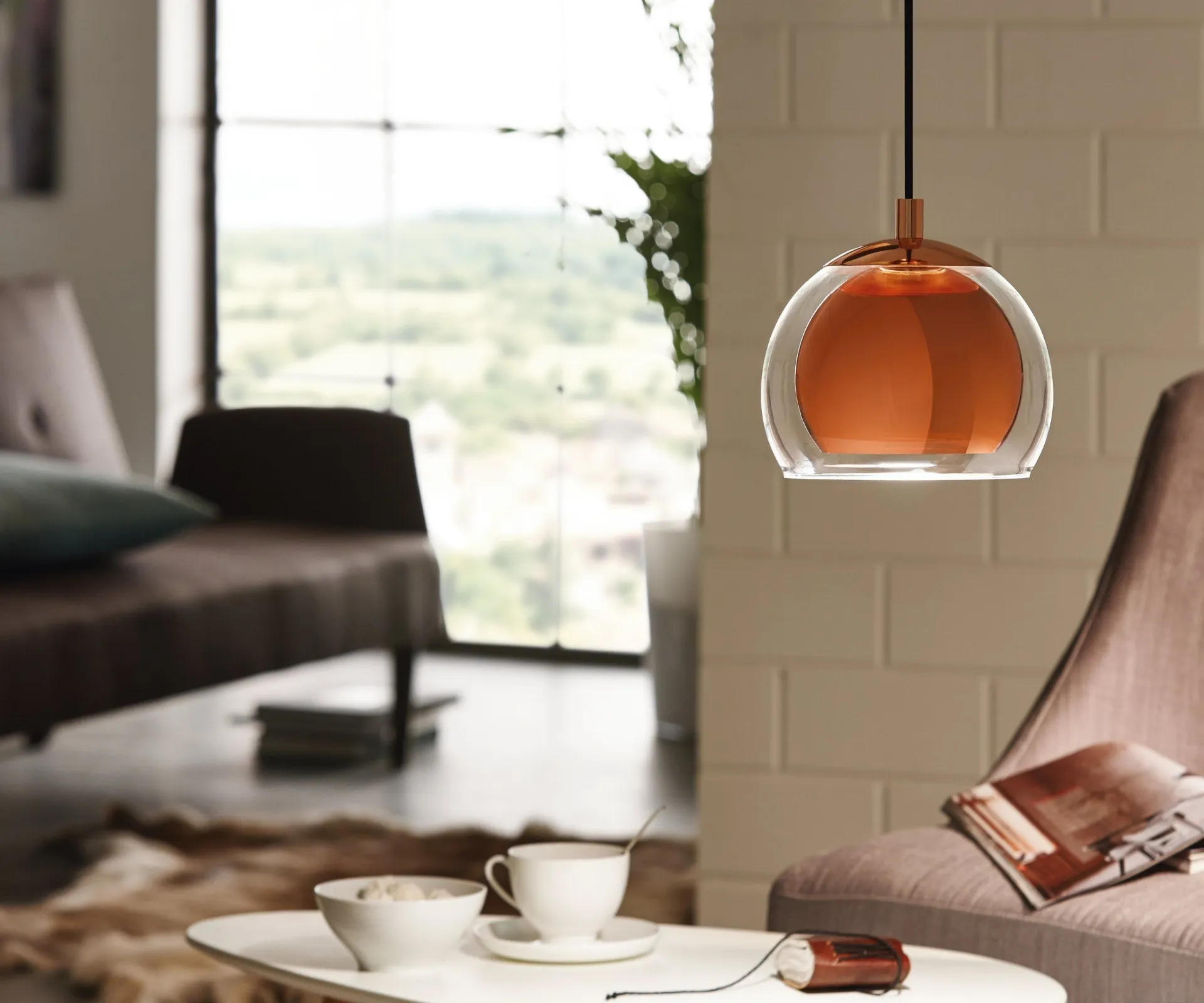 La ROCAMAR Lampada a sospensione di Eglo è un apparecchio illuminante che incarna l'eccellenza ingegneristica e un design raffinato. La sua architettura si basa su una robusta struttura in acciaio che supporta un doppio diffusore: un guscio esterno sferico in vetro trasparente che abilmente avvolge un elemento interno in metallo con finitura color cromo. Questa configurazione ottimizza la diffusione luminosa e crea effetti visivi distintivi. La palette cromatica, dominata dal rame e dalla trasparenza del vetro, ne sottolinea la modernità e la versatilità estetica. L'investimento in questa soluzione luminosa garantisce non solo un'estetica raffinata ma anche una notevole durabilità, assicurando una soddisfazione prolungata nel tempo grazie alla qualità costruttiva.