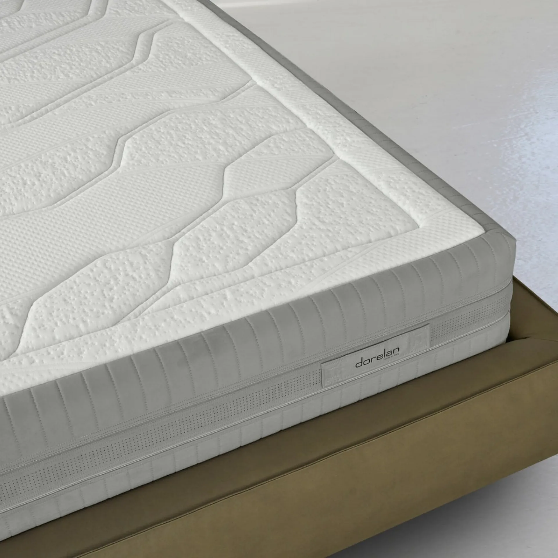 Il materasso Dorelan Arial eleva l'esperienza del riposo con un comfort climatico avanzato, integrando l'innovativa tecnologia memory foam per un microclima stabile e naturalmente protettivo da acari e allergeni. Il rivestimento esterno, un tessuto stretch ipoallergenico in viscosa e poliestere, è potenziato dal trattamento CoolPhase, che utilizza microsfere PCM per una regolazione termica proattiva, e completato da una finitura antiacaro Fibersan, infusa con oli essenziali di lavanda, eucalipto e limone. L'architettura interna è una sinergia di Myform Memory Air Clima, Myform Memory Air HD e Myform Extension, concepita per un supporto adattivo, una traspirazione ottimizzata e la stabilità termica in ogni stagione. Questo design sofisticato garantisce un riposo rigenerante, fresco nei mesi caldi e accogliente in quelli freddi, incarnando l'eccellenza tecnologica per il benessere notturno. Questa soluzione rappresenta l'apice dell'ingegneria del comfort, progettata per prestazioni durature e un benessere superiore, superando gli standard di settore.