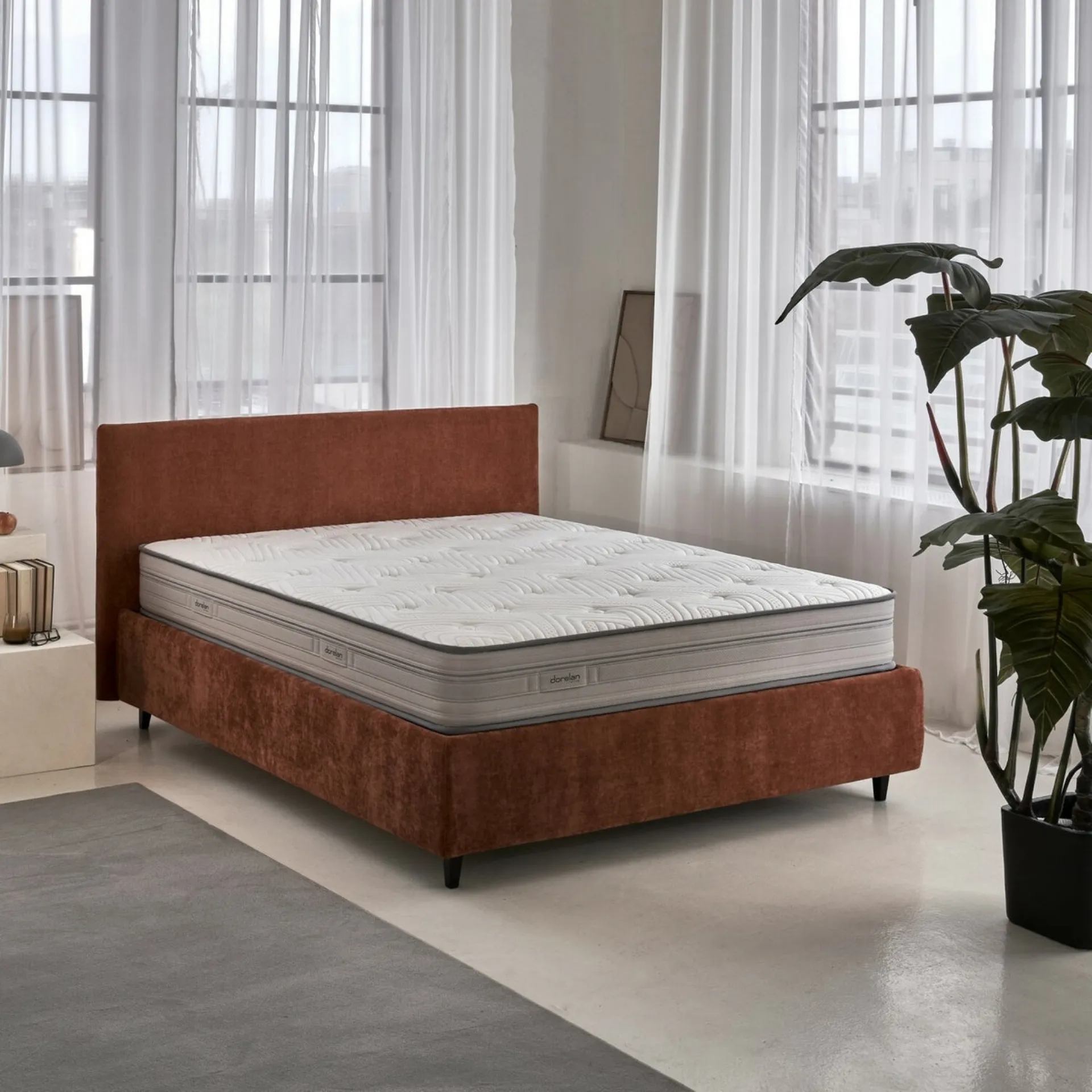 The OLIMPIC Dorelan spring mattress model is ergonomic and comfortable, capable of providing the body with the right support for the spine. Mattresses guarantee the quality of our sleep and, consequently, our daily life, which is why they should always be chosen with great care. The products we offer in our showroom are designed to provide the best rest for every household member, thanks to anatomical shapes and innovative materials. Visit us in the showroom and you will be able to personally see all our double spring mattresses: the best solutions for a good night's sleep await you. Comfortable, healthy and durable: the model visible in the photo belongs to the rich line of ideas designed for a good night's sleep by the brand.