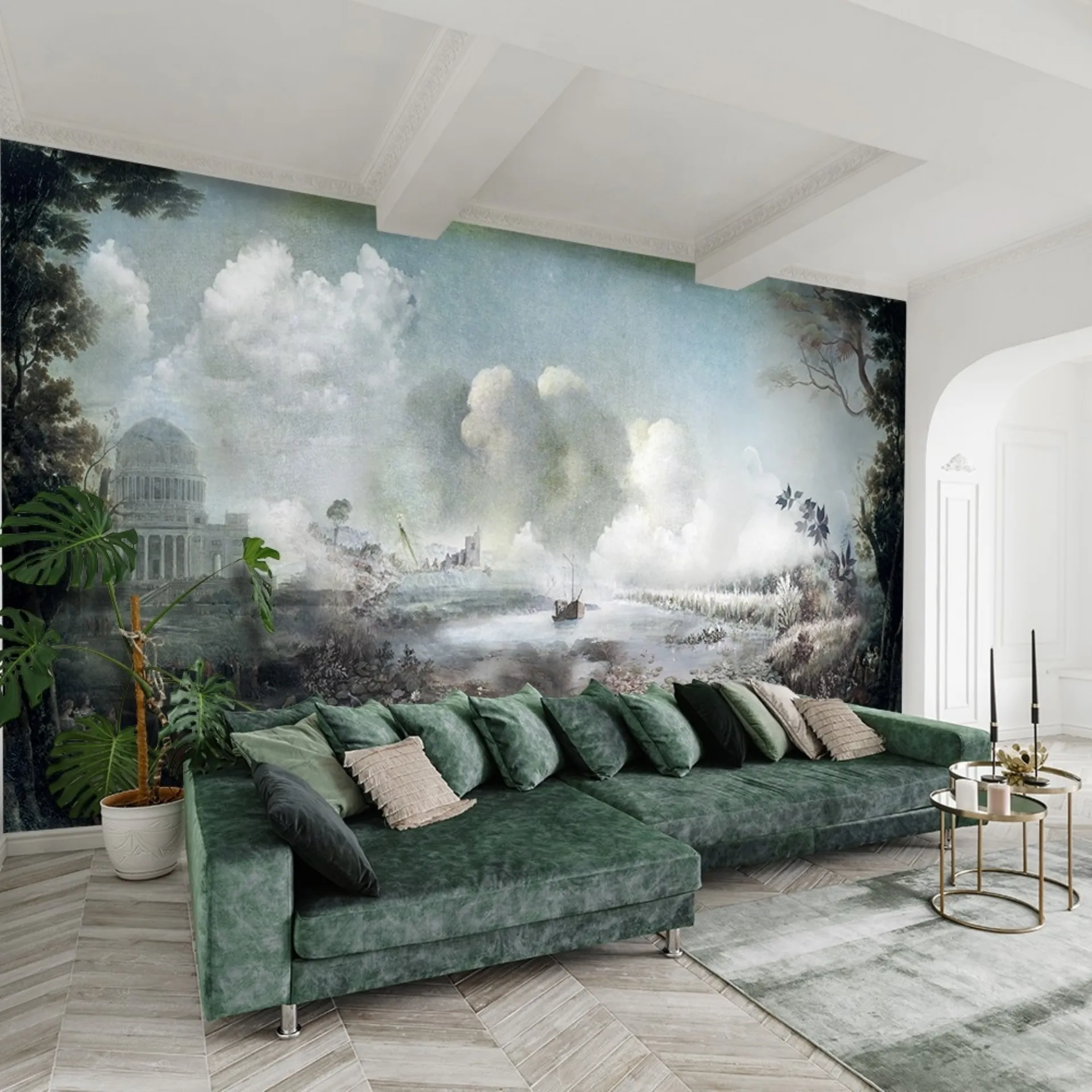 Posso personalizzare le dimensioni della carta da parati 'England' o visionare i campioni dei materiali?Certamente, è possibile personalizzare le dimensioni standard degli arredi. Inoltre, puoi visionare i campioni di materiali (tessuti, legni, laccati) e farti consigliare nella nostra materioteca.